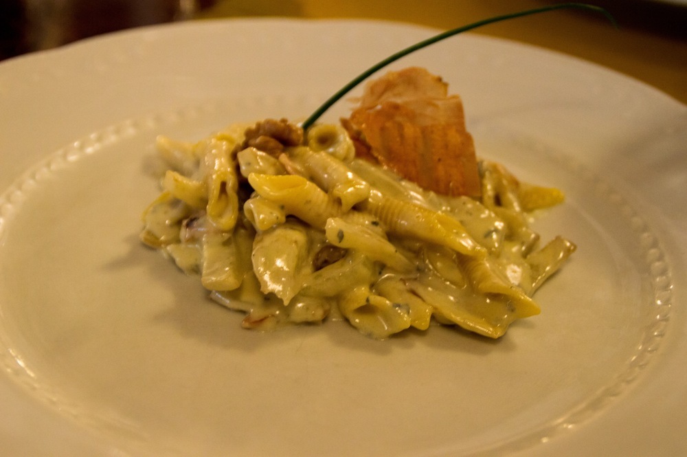No prato de petiscos havia a saborosa pasta de bacalhau no pãozinho, linguicinhas fritas, lulas fritas, entre uma série de outras delícias. Ah, a massa era um garganelli fresco, com molho de gorgonzola, nozes e bacon... Uma verdadeira perdição!
