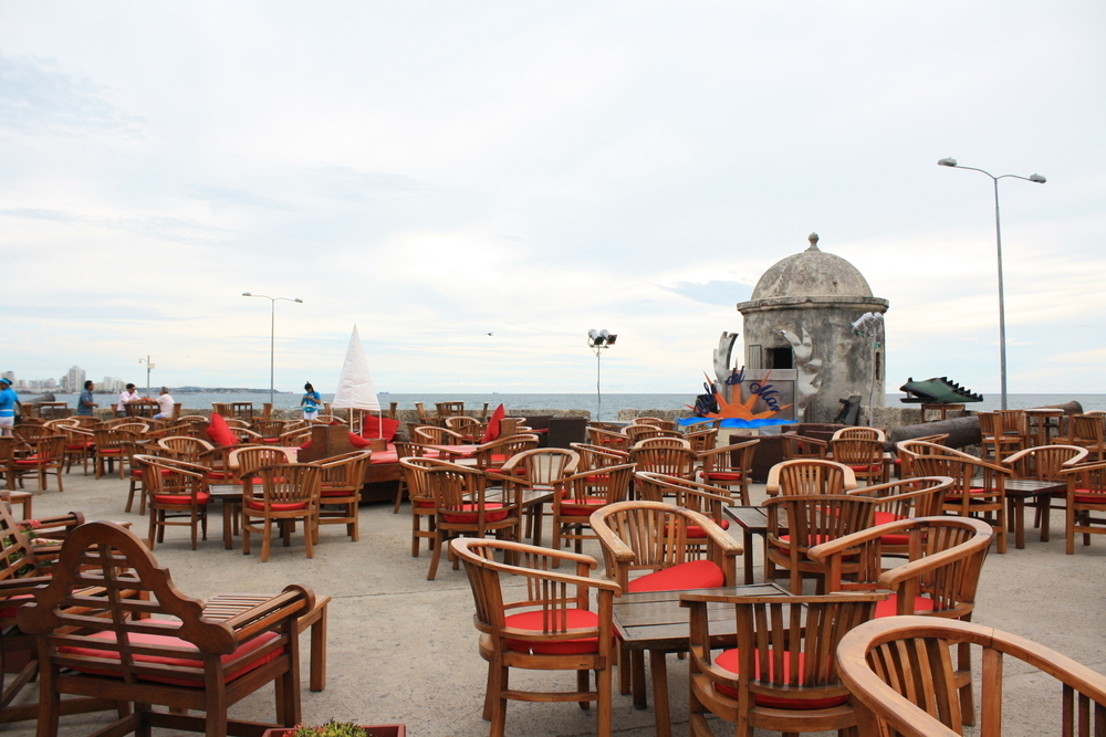 O Café del Mar é um dos estabelecimentos que você não deve deixar de conhecer durante sua viagem. Ele está exatamente em cima da muralha que cerca Cartagena e tem visual incrível para o mar, além da localização privilegiada para admirar o sol se pondo.