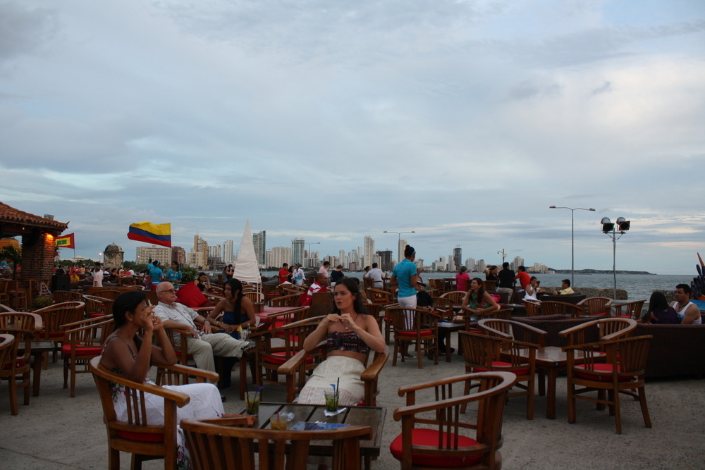 Logo no final da tarde, o Café começa a se encher com os turistas que querem observar o sol se despedindo - e continua cheio noite adentro, quando as pessoas se encontram para petiscar e tomar alguns drinks. Seja durante a tarde ou à noite, não deixe de visitar o Café del Mar, um dos mais cobiçados pontos de Cartagena!