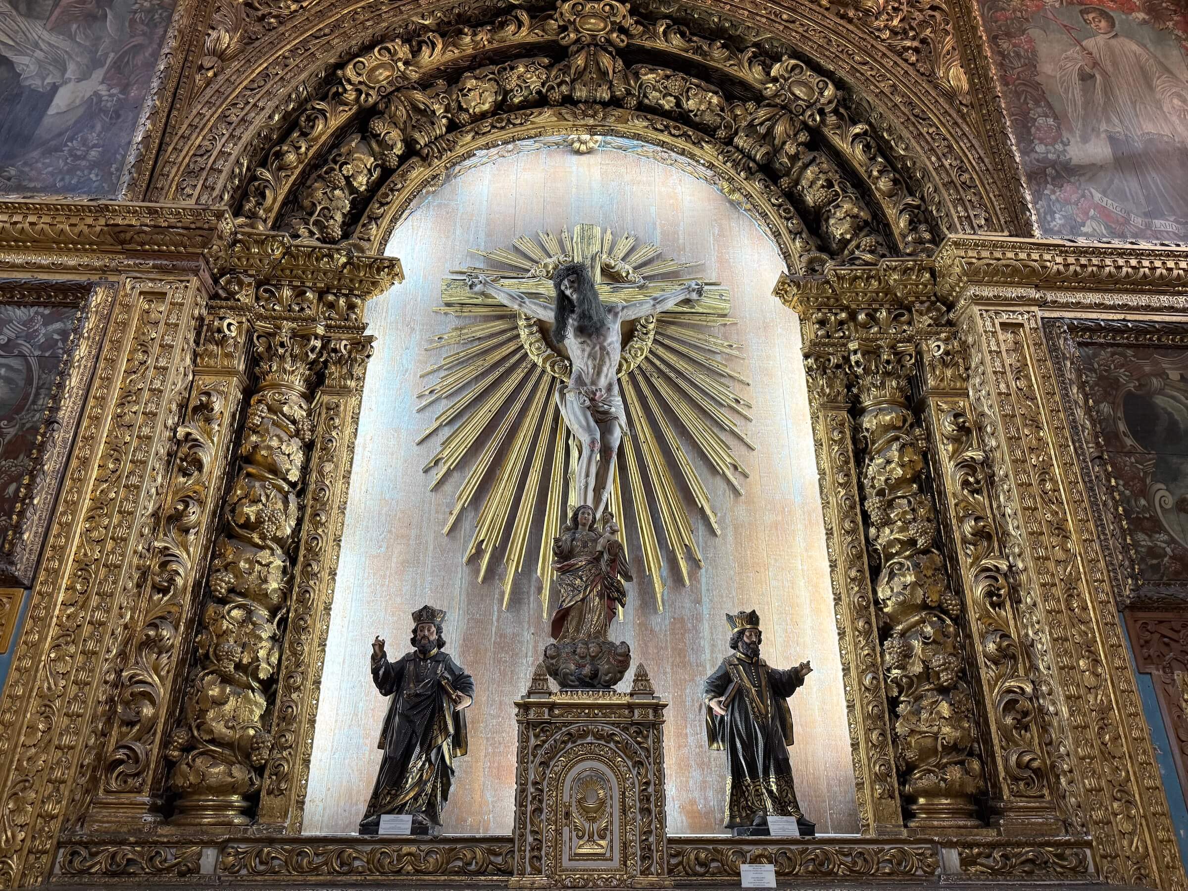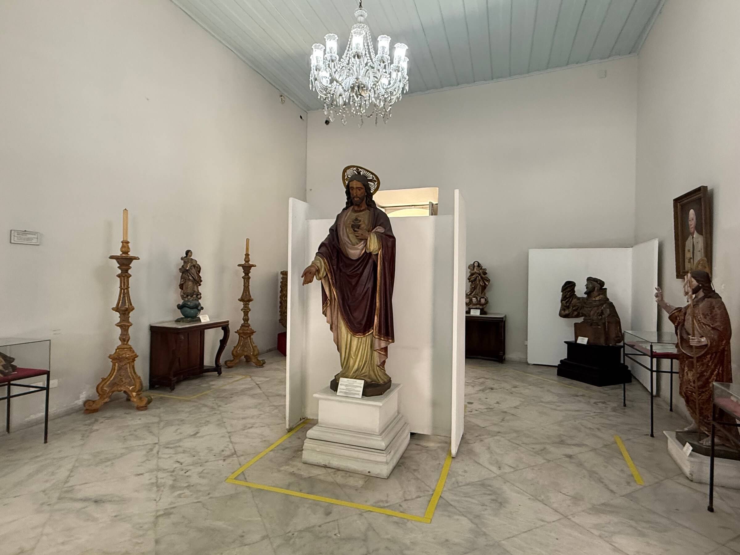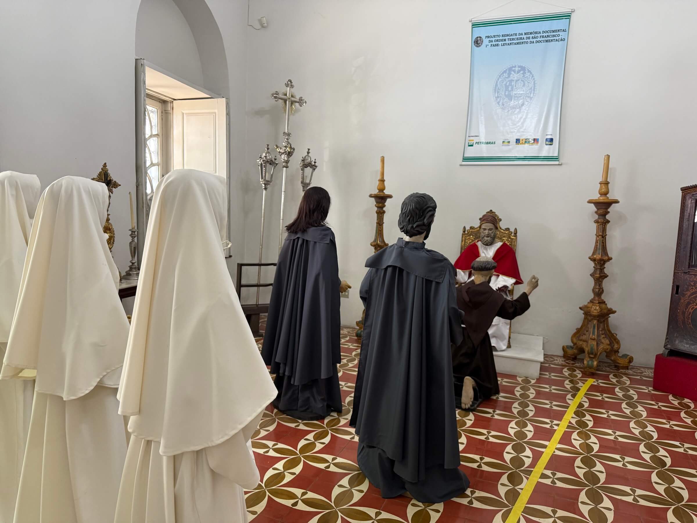 A Capela Dourada é precedida por um jardim interno e pelo Museu Franciscano de Arte Sacra. É um pequeno espaço com imagens sacras e uns bonecos tipo manequins simulando passagens da história da igreja católica. Tudo isso faz parte do complexo do Convento e Igreja de Santo Antônio, um prédio lindíssimo também, mas que não está aberto à visitação — ou pelo menos não estava na época que eu visitei.