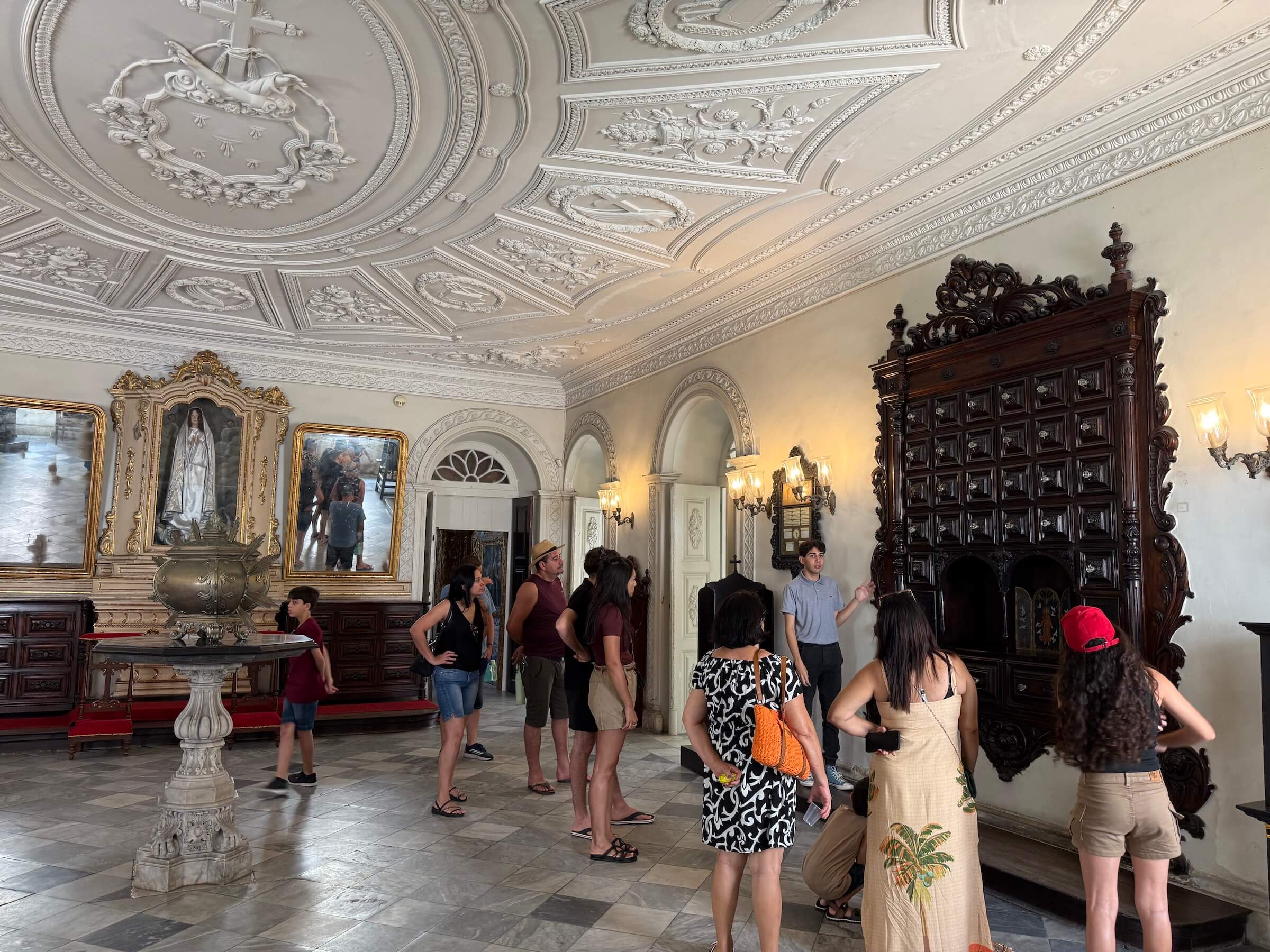 Um funcionário guiou os visitantes, dando explicações sobre o local e contando curiosidades. Você sabia que os cabelos das imagens é humano mesmo? No século 19, mulheres entregavam o cabelo para a igreja, que era o que de mais valioso podiam doar.