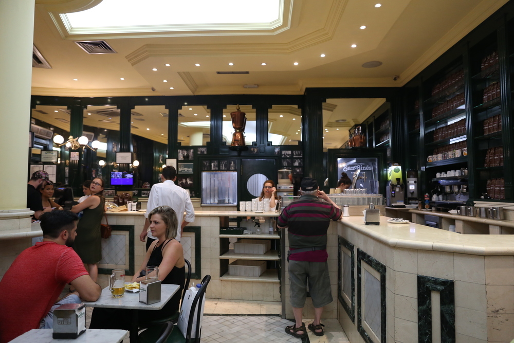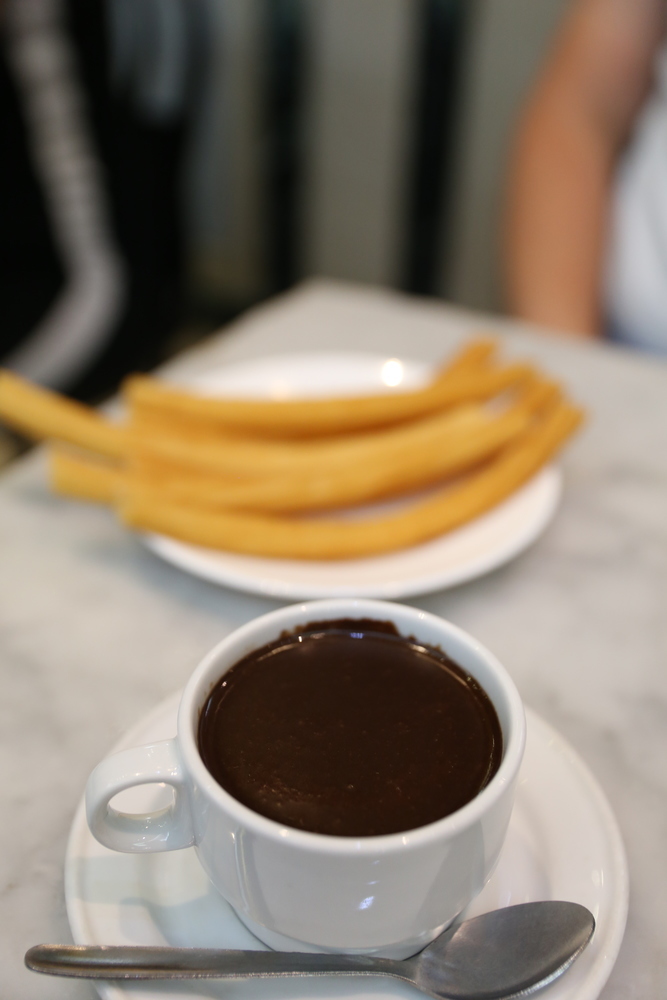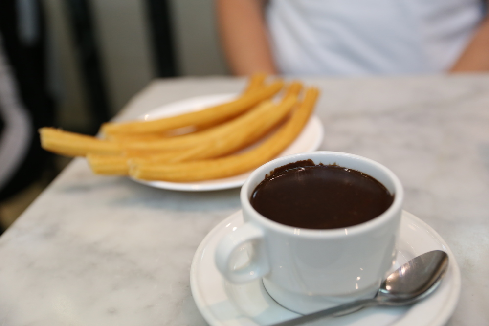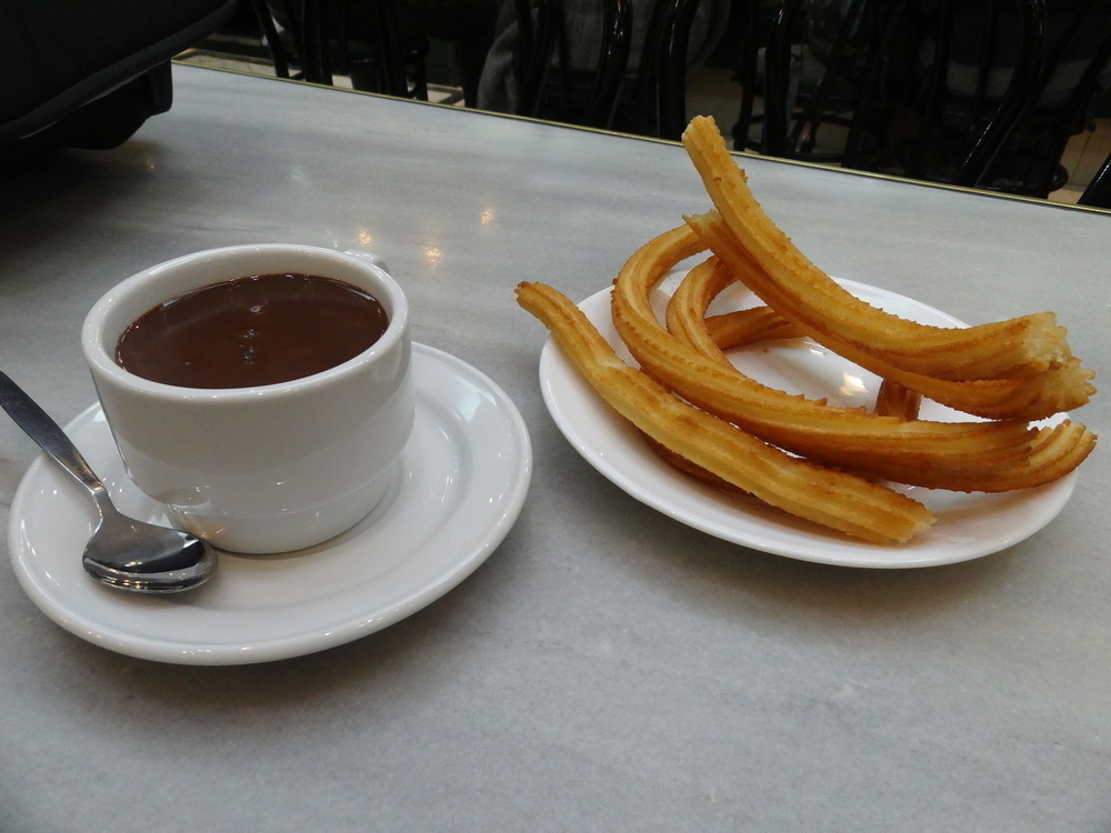 O que mais se pede no local são os churros com chocolates, que vêm a calhar para aquecer as noites frias. O atendimento no local é rápido, feito em um caixa e entregue nas mesas. Os churros são bem crocantes e uma porção de chocolate com churros pode servir a duas pessoas sem muita fome - o chocolate vem acompanhado de alguns churros. É um local econômico, mas bastante clássico e turístico, por isso costuma ter fila em sua porta.