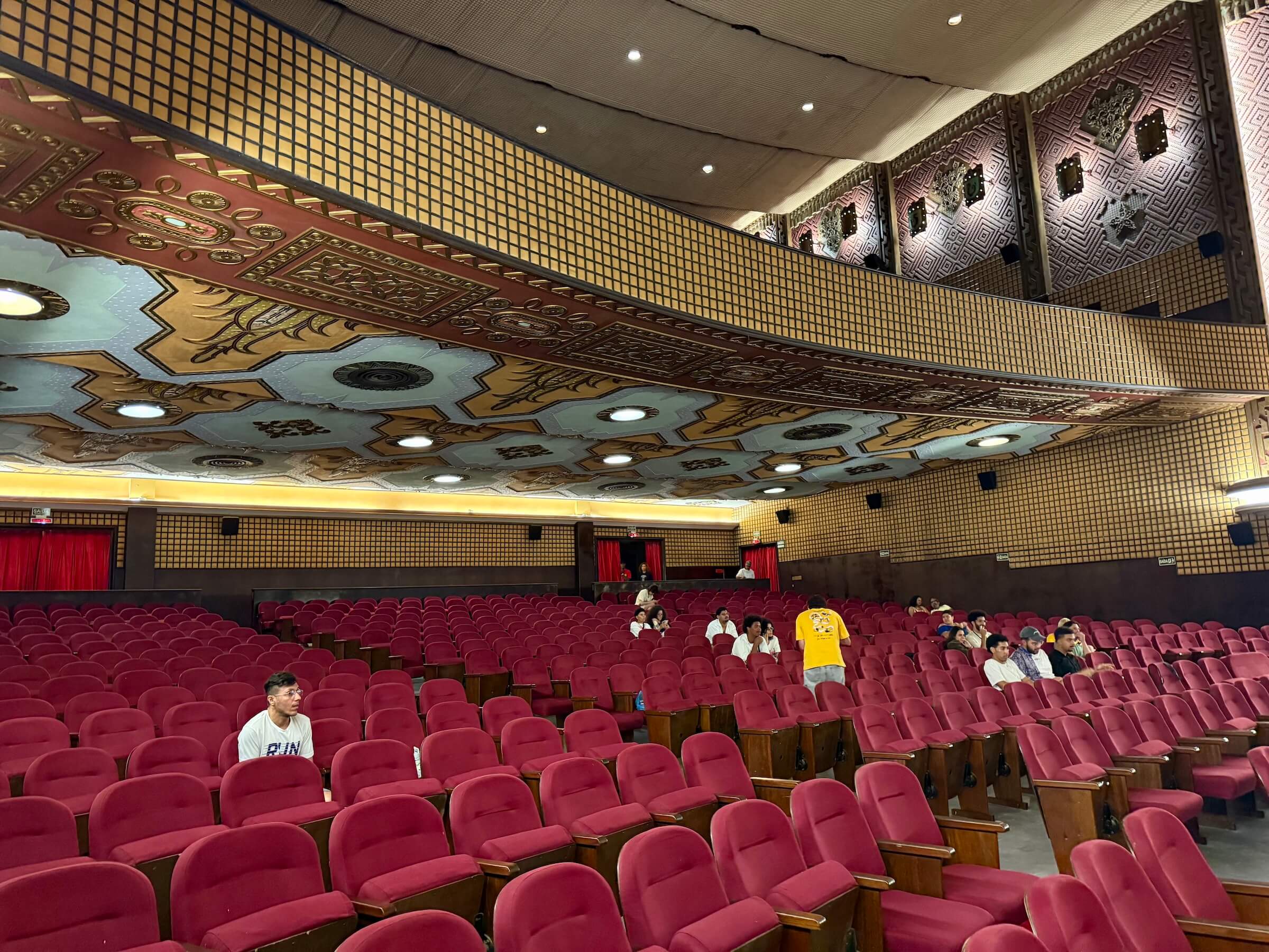 O São Luiz fica na Rua da Aurora, que é na verdade uma movimentada avenida que margeia o Rio Capibaribe. Inaugurado em 1952, ele chegou a ficar anos fechado, mas foi adquirido pelo Governo de Pernambuco e reaberto em 2015, totalmente restaurado. Os filmes em cartaz são divulgados semanalmente na página do Instagram. Espere uma programação mais cultural, dificilmente um blockbuster vai entrar em cartaz. No dia que eu fui, estava rolando um evento de cinema universitário.
