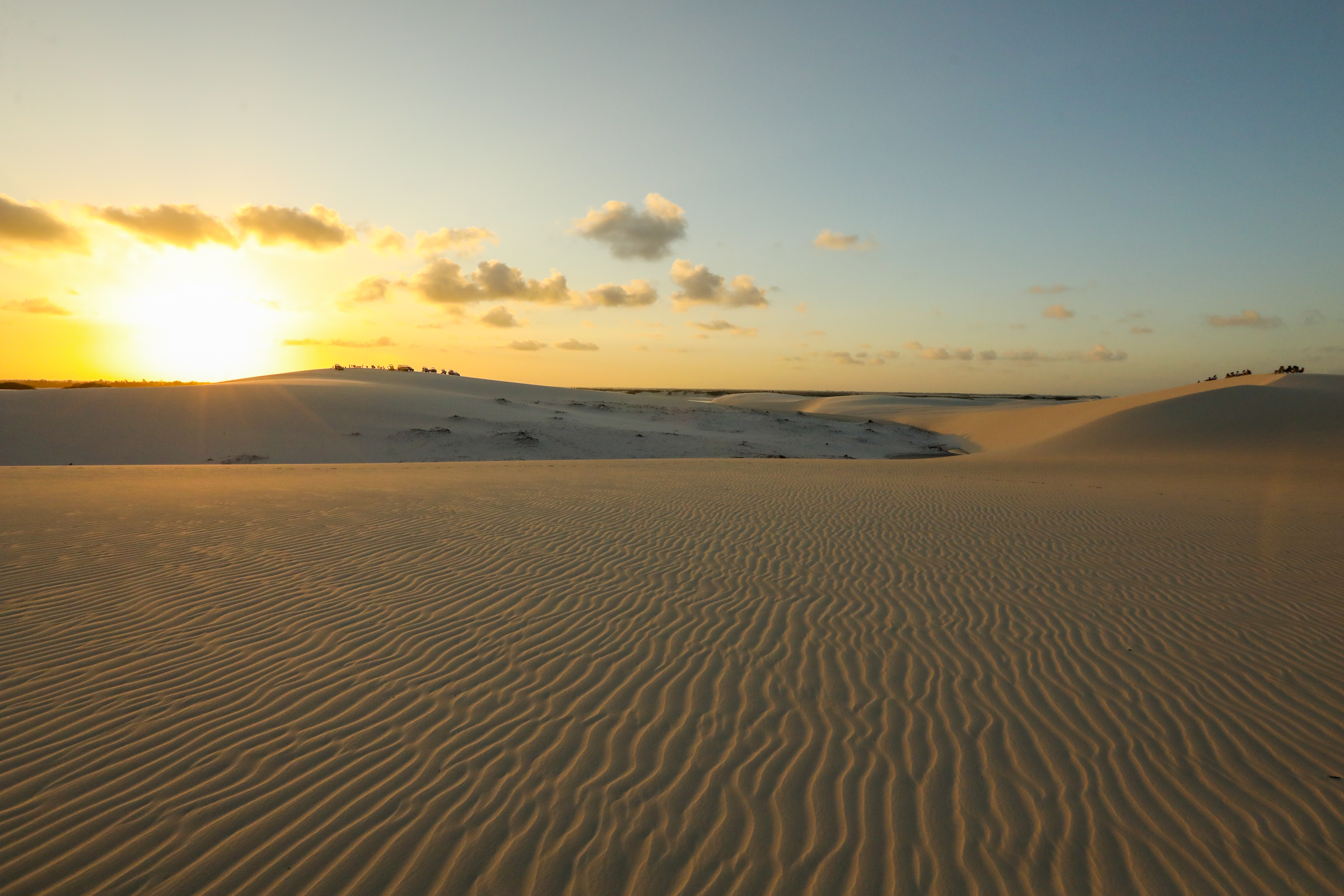 Ao final do dia, o 4x4 faz a última parada no topo das dunas, para o pôr do sol. Um espetáculo daqueles de emocionar! Aproveite cada minuto.