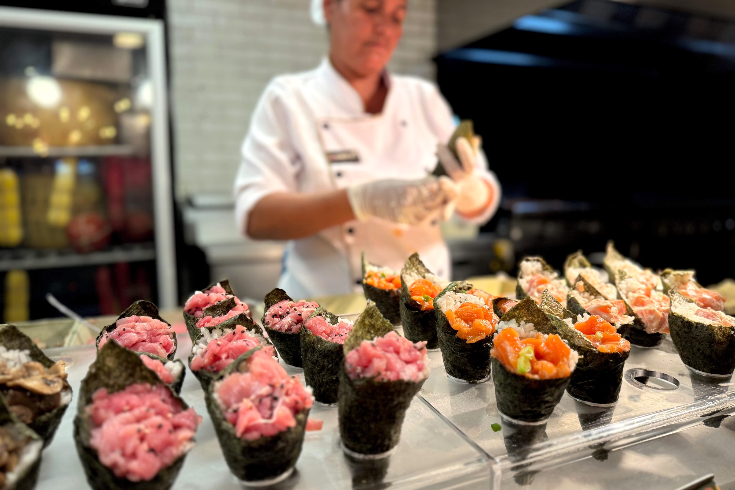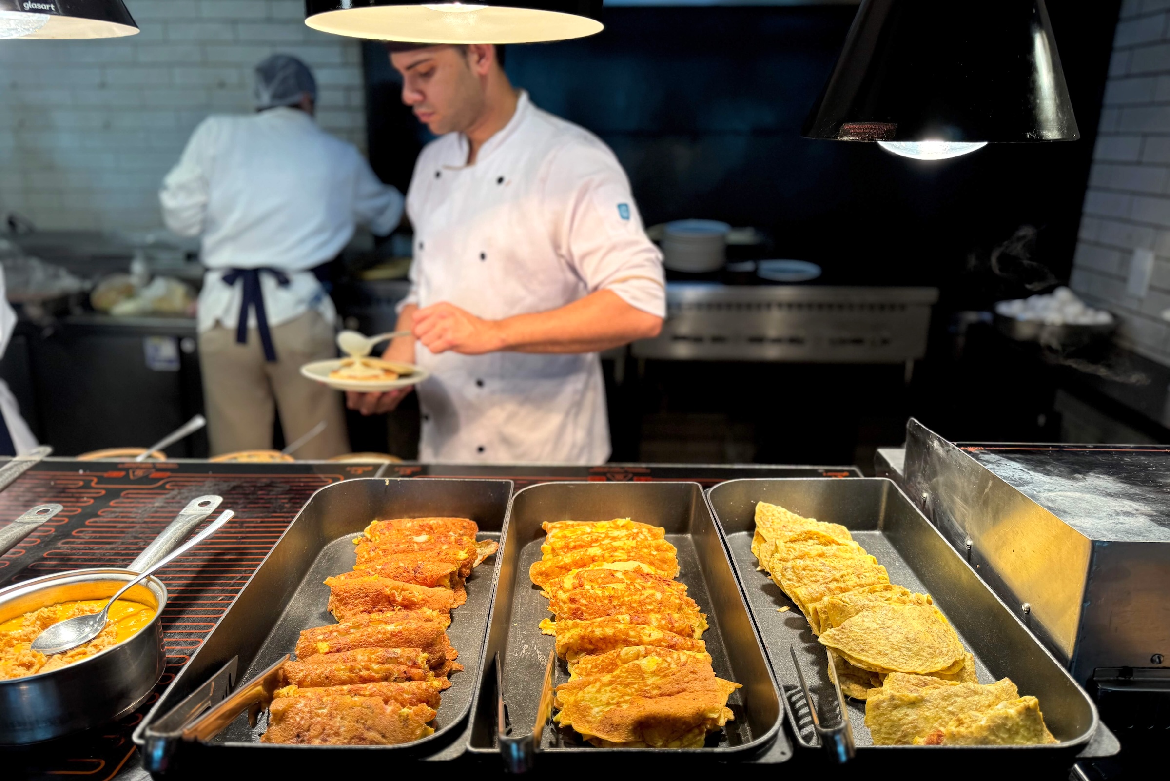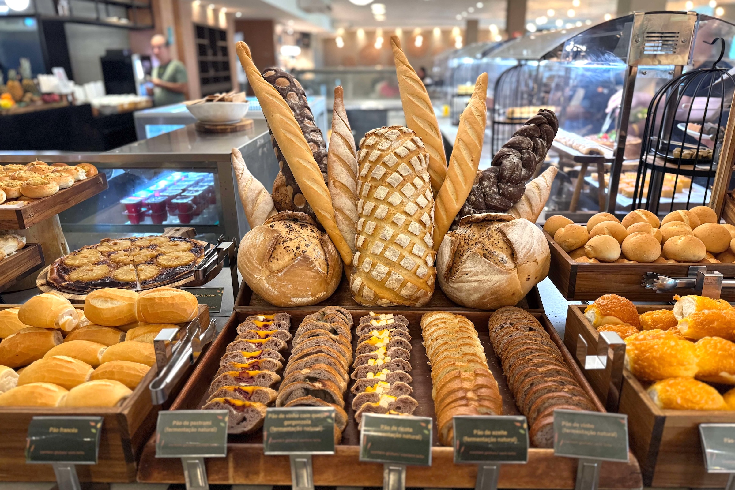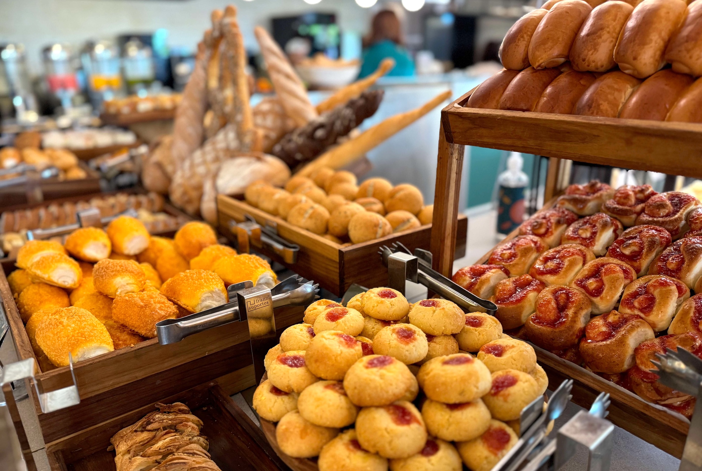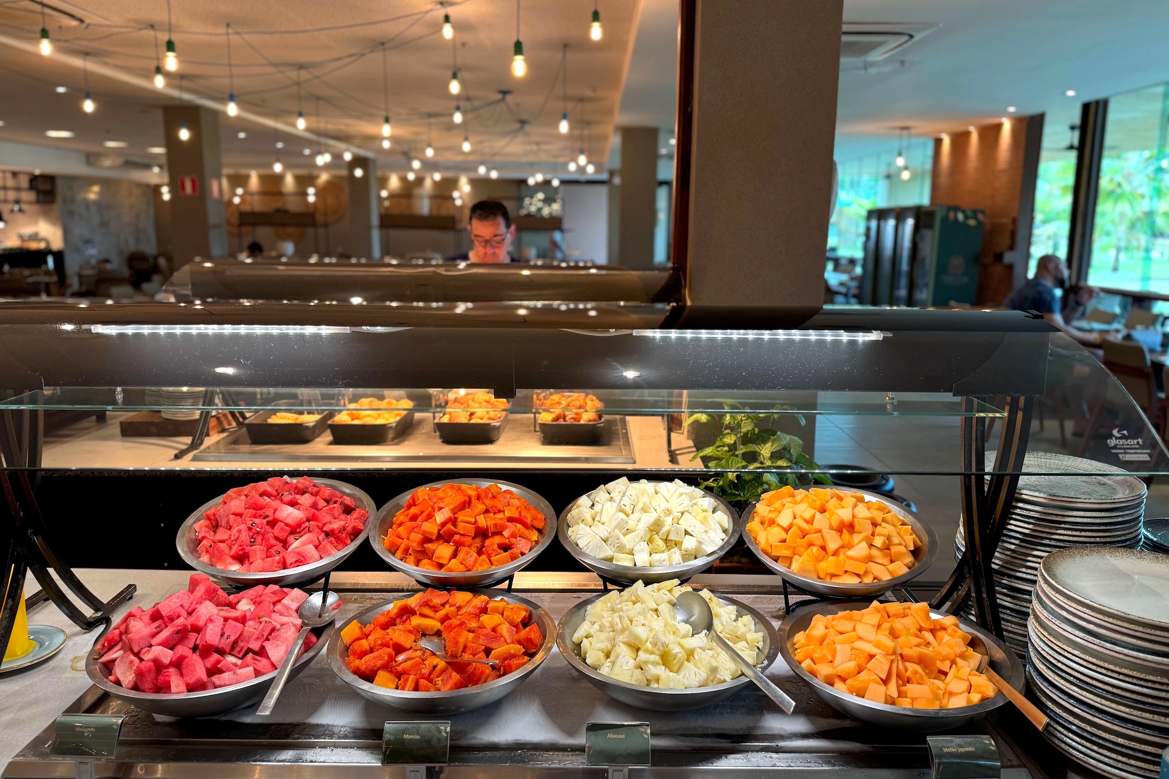 E isso tudo só para falar de alguns diferenciais. Porque em todas as refeições são diversas as ilhas de comidas no Tabôa, que funciona praticamente o dia todo: café da manhã das 7h às 10h, almoço das 12h30 às 15h, jantar das 19h às 22h e lanchinhos durante a madrugada, das 23h às 5h. No café da manhã há bolos, waffle, croissant, pão de queijo, além de omeletes, tapiocas e cuscuz feitos na hora com o recheio que você desejar. São várias as frutas cortadas ou inteiras, entre elas pitaya, abacaxi docinho e também opções regionais, como caju e seriguela. É para fazer o desjejum no capricho!