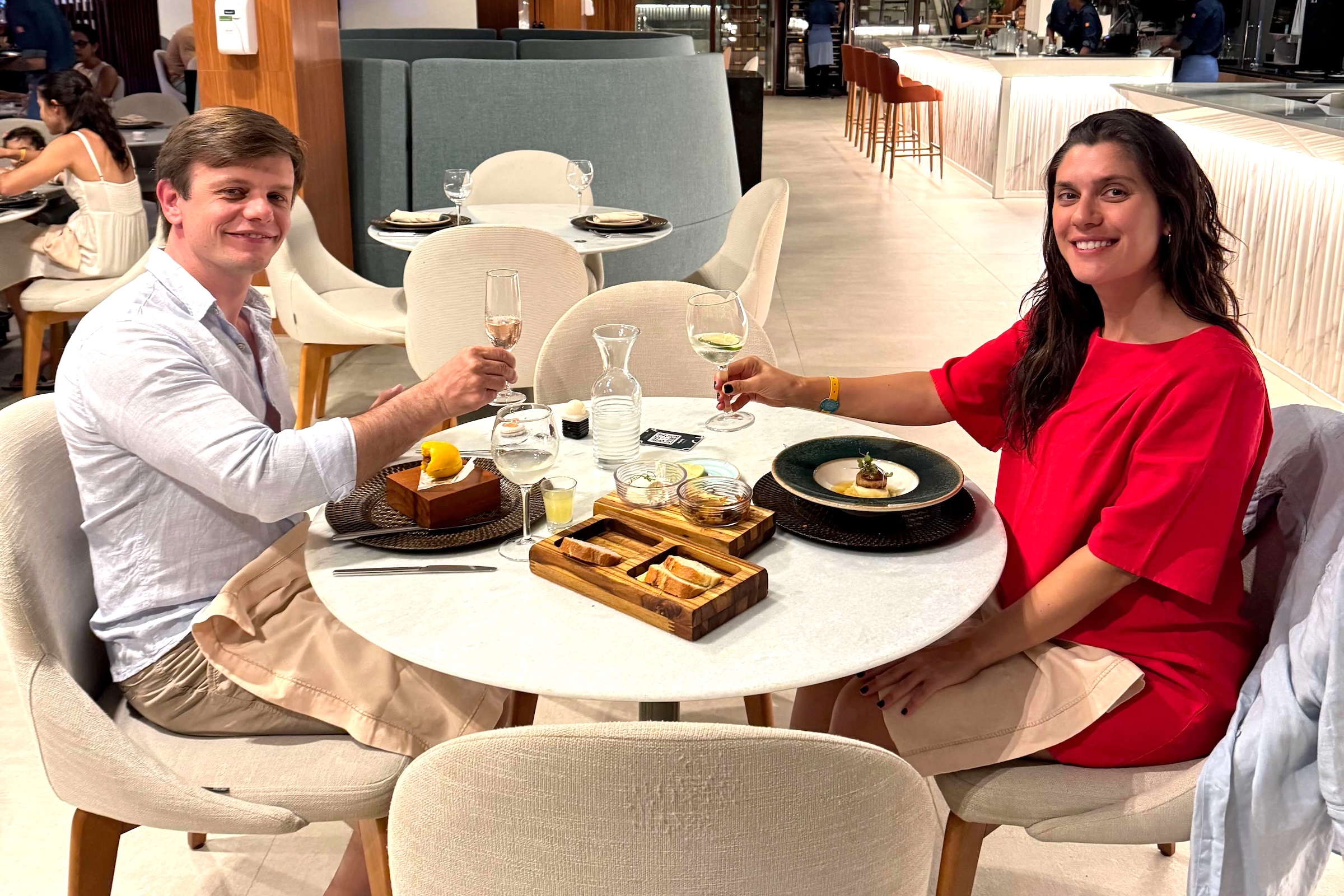 E, olha, o que já era muito bom (leia sobre a nossa estadia no Salinas Maragogi) ficou ainda melhor. No café da manhã no bufê principal, o Restaurante Tabôa, por exemplo, sempre havia uma ampla variedade de queijos e embutidos, favo de mel, geleias, pães de todos os tipos e uma estação dedicada aos sucos, onde a bebida é feita na hora, com as frutas (além de cenoura, beterraba e outros ingredientes) que o hóspede quiser. Em algumas refeições, mirando no público fitness do resort, um funcionário preparava pratões de salada, com diversas folhas, legumes, conservas e proteínas à disposição. Sem falar nos preparos especiais, que variavam todos os dias: sushis, sashimis e temakis expostos lindamente, camarões grelhados gigantes, risotos saborosos e muitas opções de delícias da culinária árabe.