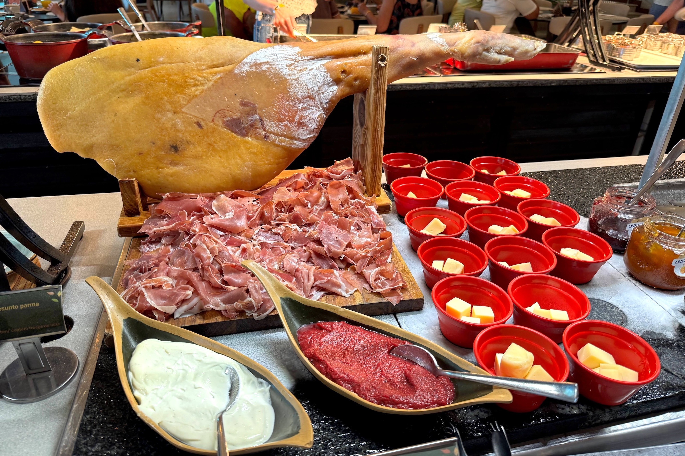 O Maka também funciona no café da manhã, das 7h30 às 11h, sem necessidade de agendamento. E é apenas maravilhoso! Acabei indo somente no último dia, porque queria tomar café mais tarde para seguir viagem. Mas poderia ter ido todos os dias. A parte servida em bufê tem menos opções do que o restaurante principal, mas conta com vários queijos, embutidos, pães, bolos e frutas.