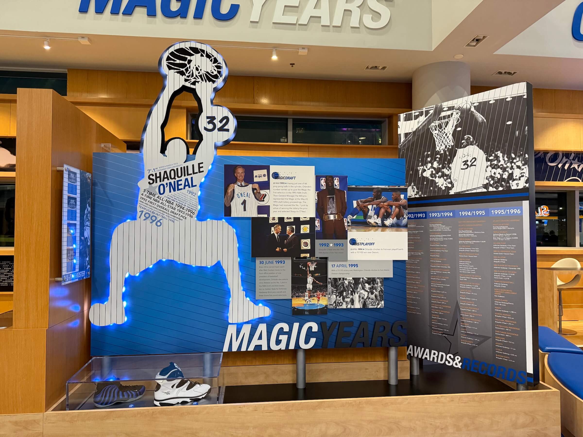 Localizado junto ao corredor mesmo, esse espaço conta brevemente a história do time e das estrelas que já passaram por ele, com alguns objetos pessoais. Todo mundo quer comparar o tamanho do seu pé com o tênis do Shaquille O'Neal.