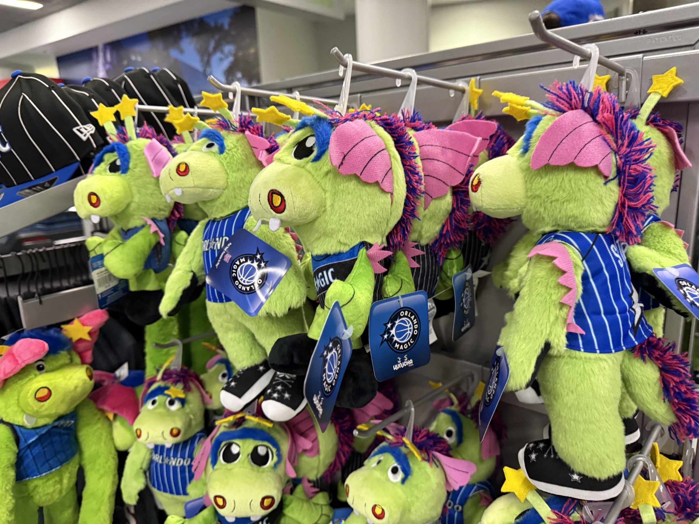 Tem várias lojinhas do Magic espalhadas pelo Kia Center, que vendem camisetas, regatas, jaquetas, pelúcias do mascote, etc (obviamente, nada muito barato). Também tem várias lanchonetes abertas na arena em dias de eventos, especialmente no terceiro e no quinto piso. São corredores que circulam toda a circunferência do ginásio, então você pode dar a volta inteira procurando o que mais de agrada.