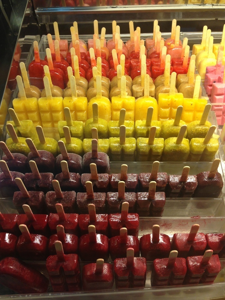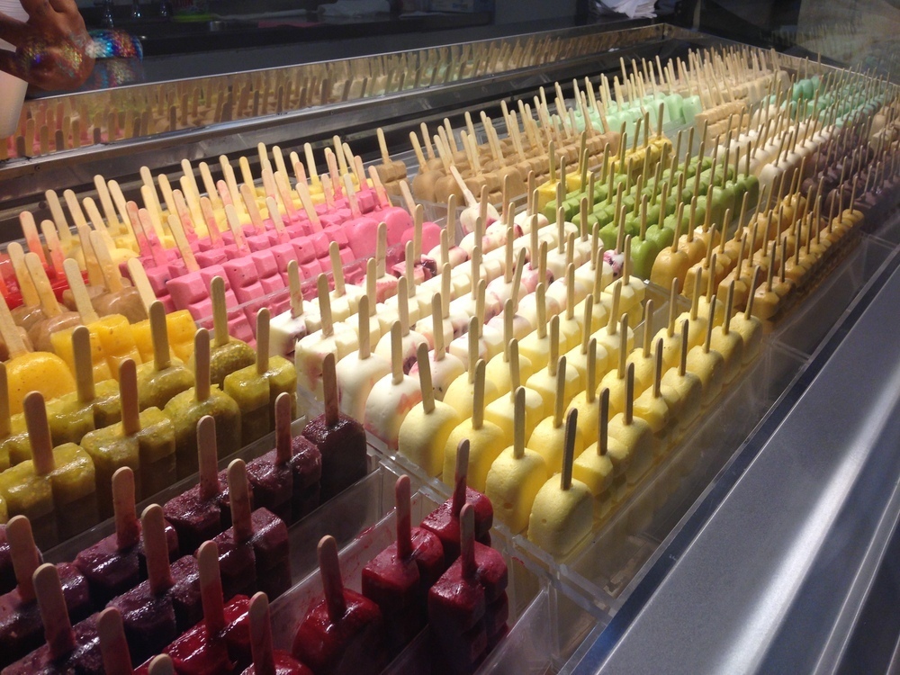 Expostos de uma forma que impressiona pelo colorido e deixa em dúvida os clientes sobre qual sabor escolher, o lugar tem picolés feitos com água, iogurte e leite, e ainda permite que uma cobertura seja colocada, caso seja de seu gosto. Difícil é passar por lá somente uma vez e se contentar com um picolé apenas! Eles são uma delícia!