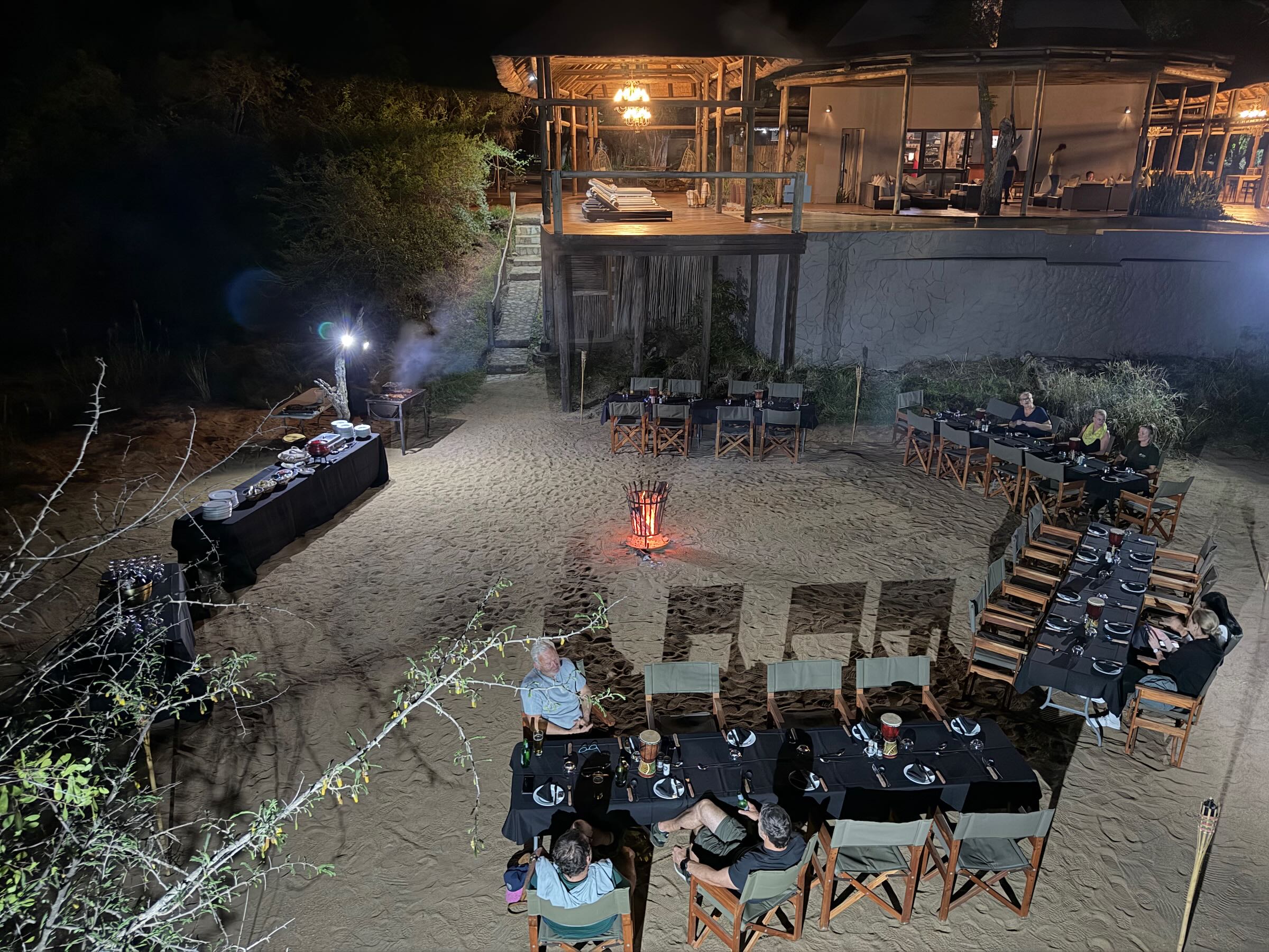 À noite eram servidos os jantares e o que percebi é que a ideia é diversificar e imergir na cultura africana — em uma das noites da minha hospedagem houve um jantar à la carte e em outra um jantar ao estilo buffet, com direito a músicas e danças da região. Tive ainda a felicidade de compartilhar meus dias no Moditlo com outros brasileiros — e todos estavam igualmente encantados. Nos jantares, conversávamos sobre os avistamentos do dia, revivendo cada momento com entusiasmo.