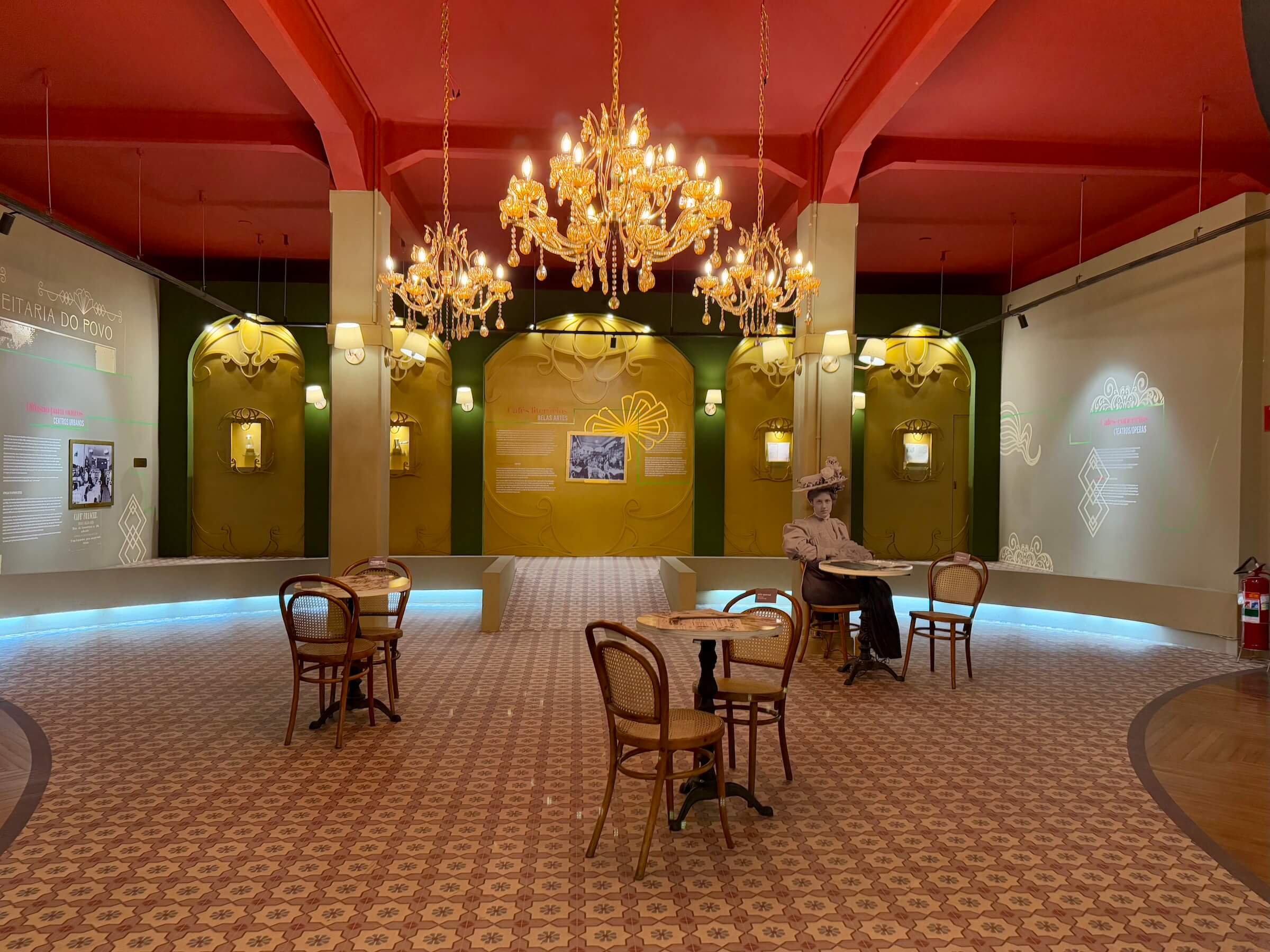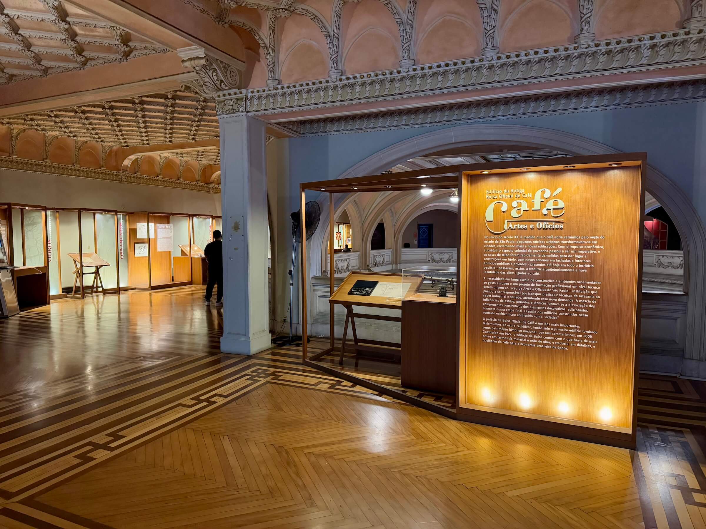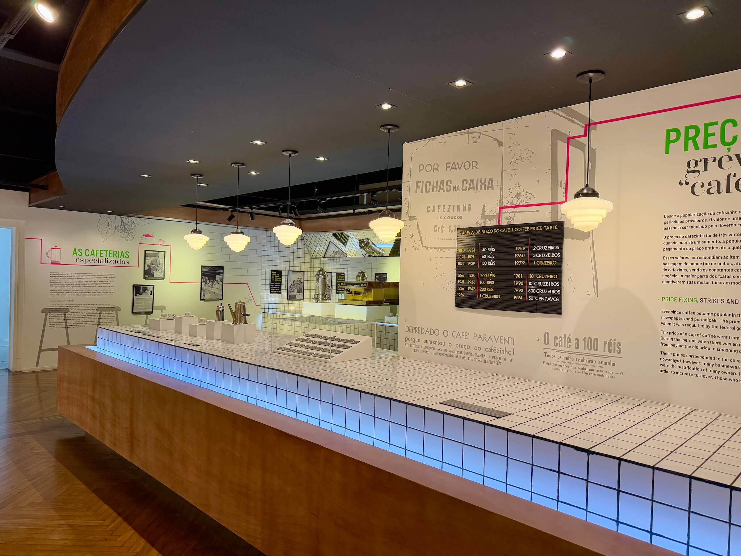 Assim que por os pés no museu, eu sugiro tomar um café para ir entrando no clima. Por ali mesmo, na cafeteria que fica na entrada do prédio — você vai ser guiado pelo cheiro. Mas abro um parêntese para sugerir que inclua no roteiro pelo centro uma parada no Rei do Café, que tem cafeteria, torra e moagem ali pertinho, na Rua Gonçalves Dias.