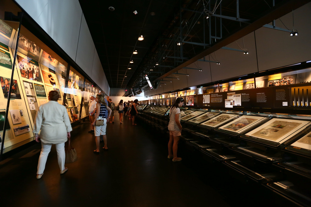 Comece o passeio pelo térreo, onde você poderá conferir as fotografias premiadas pelo Pulitzer, assim como os depoimentos em vídeo dos autores das imagens. É apenas um aperitivo do que será visto nos seis andares do Newseum. Algumas das principais atrações são: pedaços do muro de Berlin; restos do World Trade Center e o equipamento do fotógrafo morto no atentado; uma exposição sobre os casos marcantes do FBI; 300 capas de jornais que contam mais de cinco séculos de história; equipamentos usados por jornalistas ao longo da história; um estúdio de TV real e muitos mais! Tudo acompanhado de vídeos e atividades interativas. O museu é tão grande e envolvente que o ticket de entrada vale para dois dias.