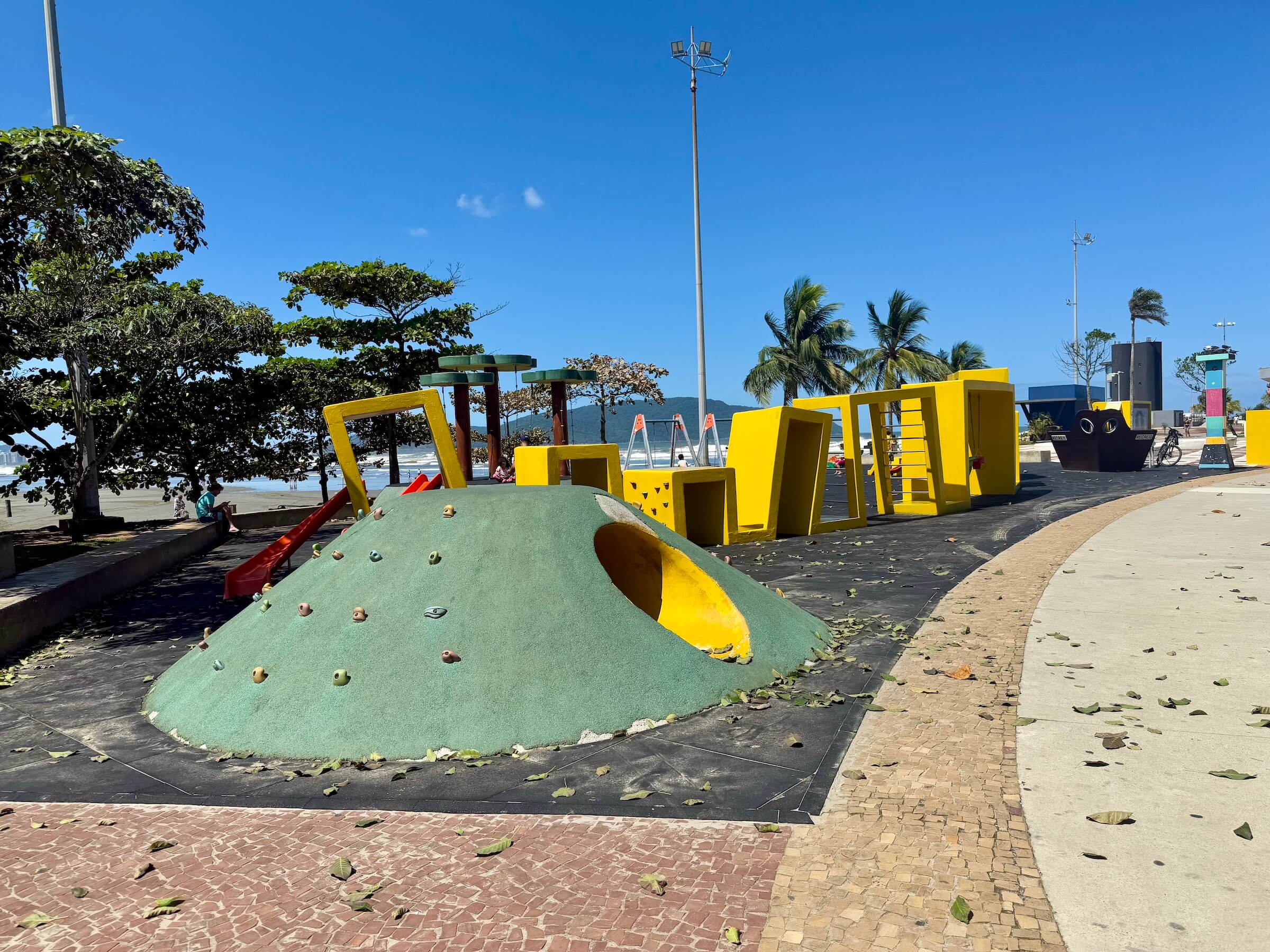 O Quebra-Mar é uma área de lazer completamente revitalizada à beira-mar, com uma das vistas mais incríveis da Baixada Santista. Por ali, há pista de skate, de pump track (circuito de lombadas para ciclistas), quadra de basquete 3x3, cancha de malha, cantinhos instagramáveis e banheiros públicos. A criançada se diverte em um playground e uma fonte interativa com jatos que brotam do chão — elas adoram passar correndo para se molhar.