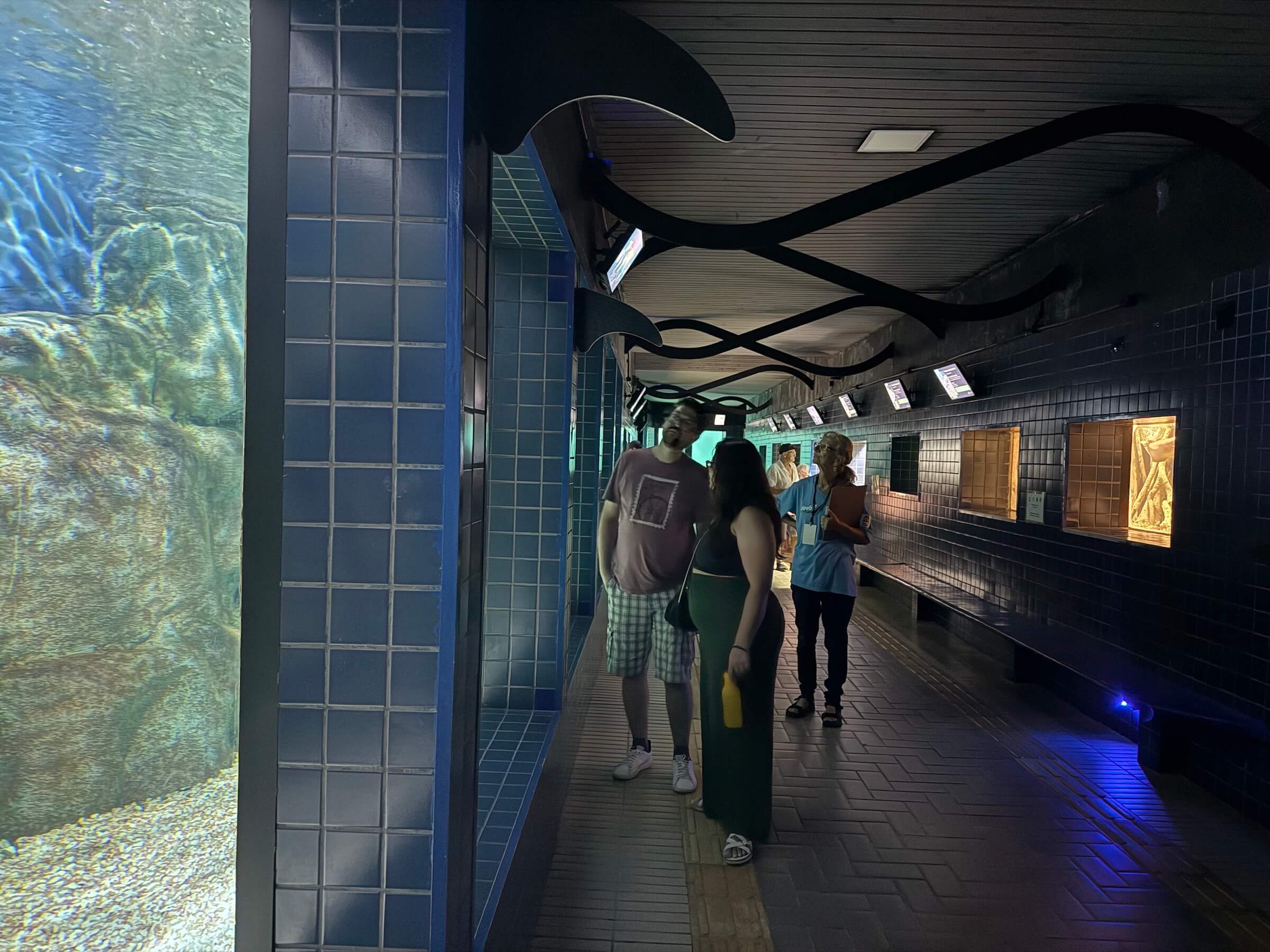 Por lá você vê tubarões-lixa, tartarugas, pinguins, raias, estrelas-do-mar, ouriços e, é claro, muitas espécies de peixes — sernambiguara, corcorocas, xaréus, robalos, salemas, marimbas... O Aquário ocupa uma área de 3 mil m², com 32 tanques. Do lado direito, estão os tanques de água salgada e, do esquerdo, os de água doce. Todos os tanques receberam cenografia que reproduzem os habitats naturais dos animais.