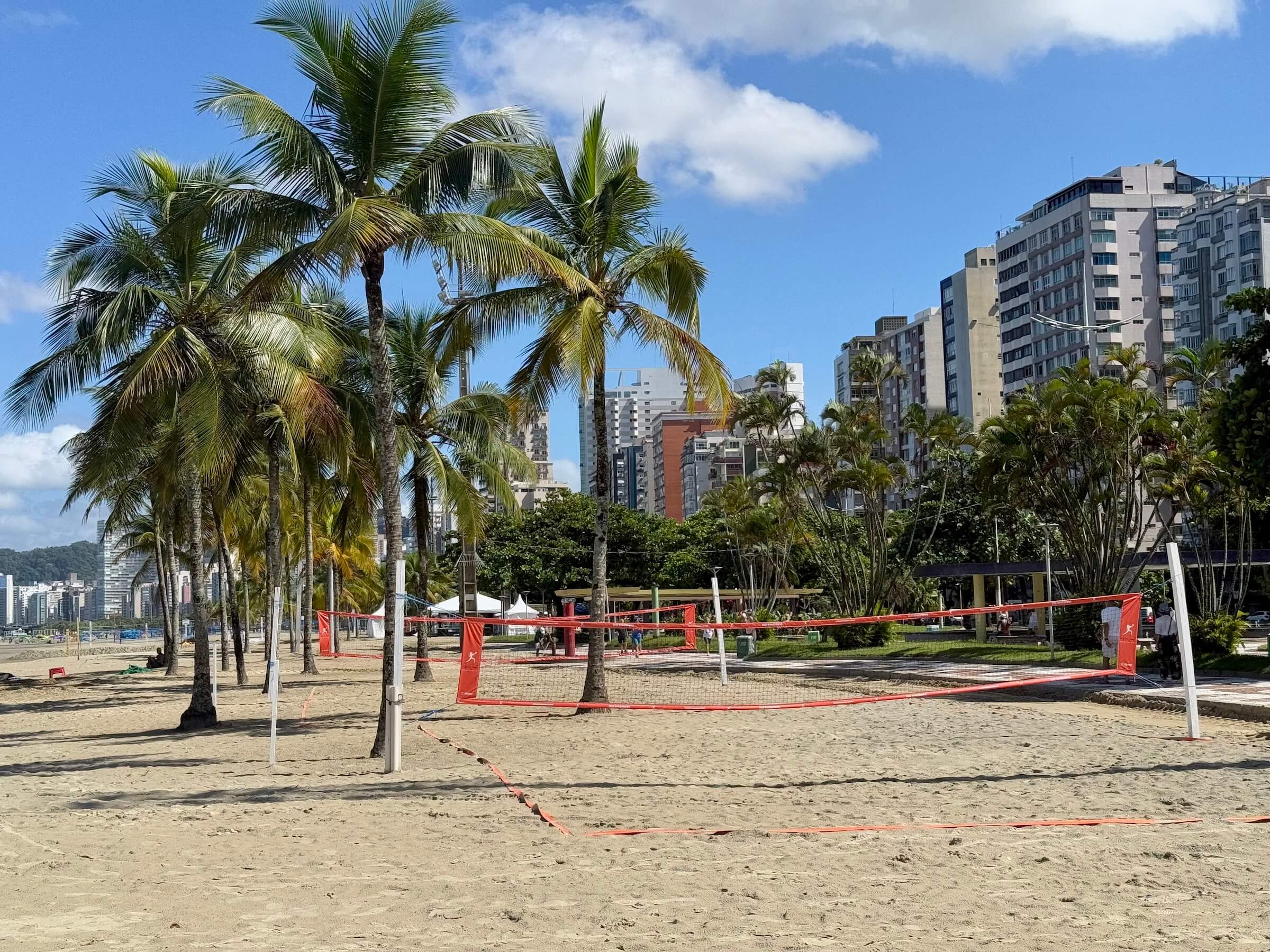 A praia de Santos bomba no verão, mas tem movimento em qualquer época do ano, com uma galera pegando sol e praticando exercícios físicos — beach tennis e futevôlei são febre por lá. A faixa de areia é larga, com muitas barracas de comida e canchas, alguns coqueiros também. A praia é voltada ao mar aberto e tem ondas tem ondas — normalmente, moderadas.