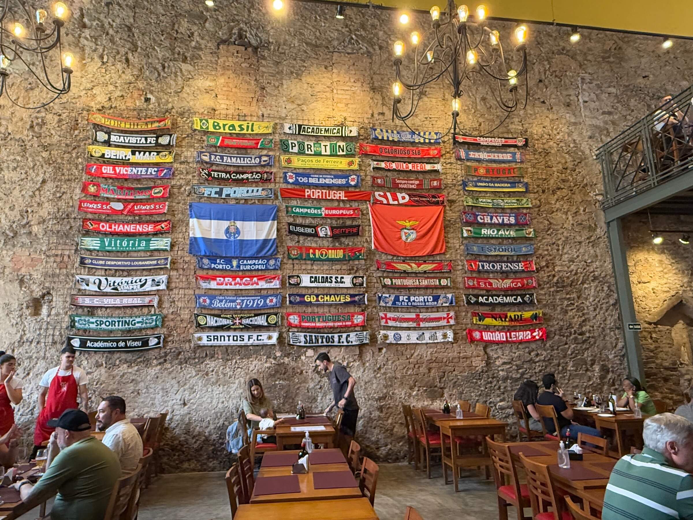 Descrevendo-se como "uma casa portuguesa, com certeza" restaurante tem um ambiente amplo, com a parede de concreto aparente coberta com brasões de times de Portugal. No cardápio, eu contei também sete pratos com bacalhau. Ah, vale ficar de olho na agenda de noites de fado.