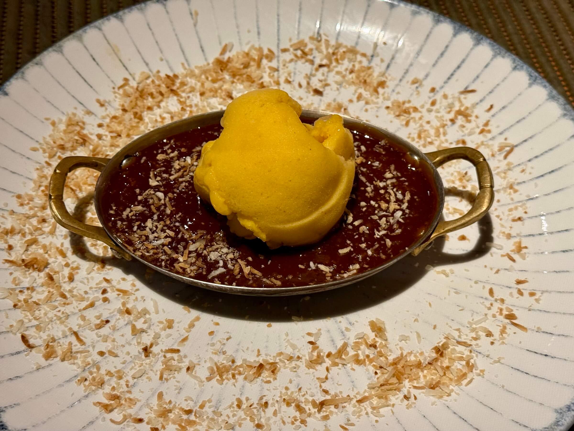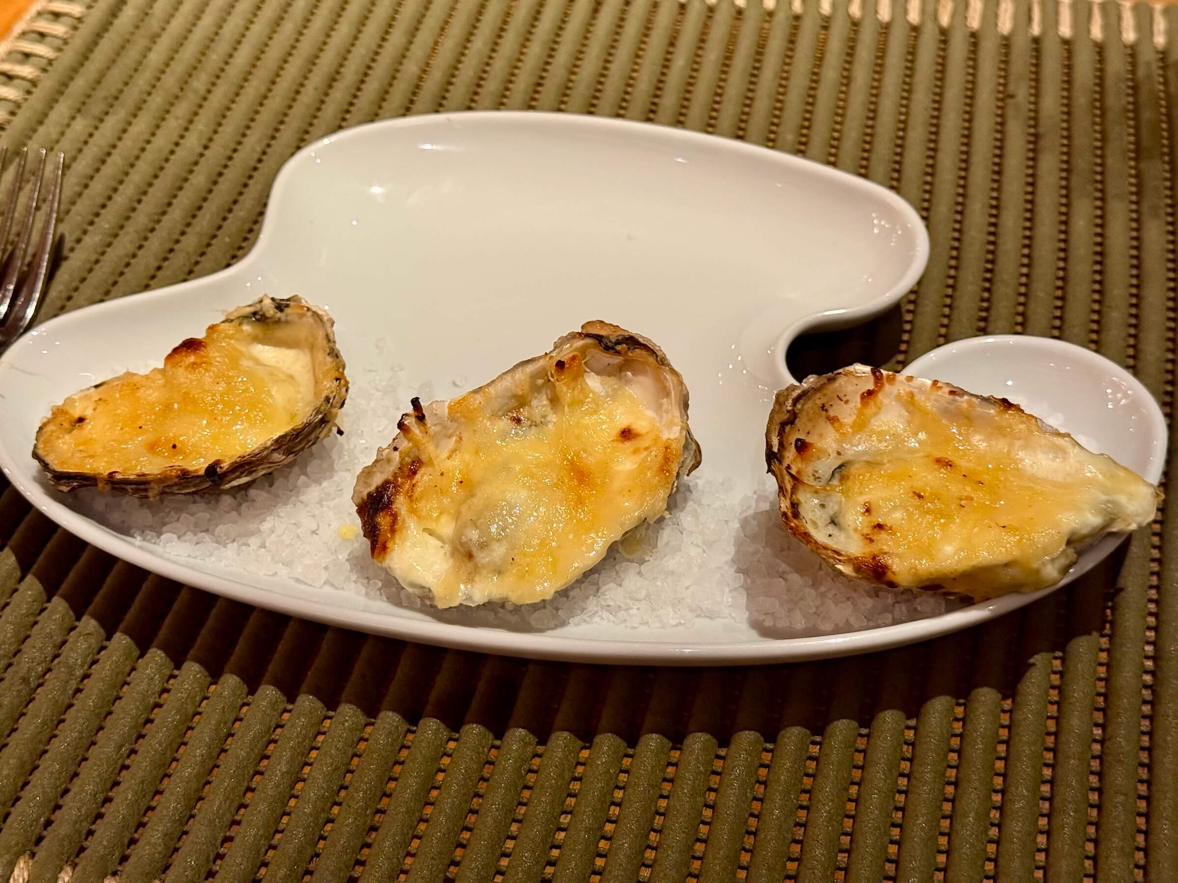 De entrada, eu pedi um trio de ostras gratinadas com queijo de cabra, divinas (R$ 64). De prato principal, eu fui nesse filé mignon de sol às natas com croqueta de macaxeira e queijo cremosíssima (R$ 180). Levou o prato típico a outro patamar. E pedi cocada com sorvete de cajá (R$ 48), mas me arrependi de não ter ido no beijo caboclo, especialidade da casa.