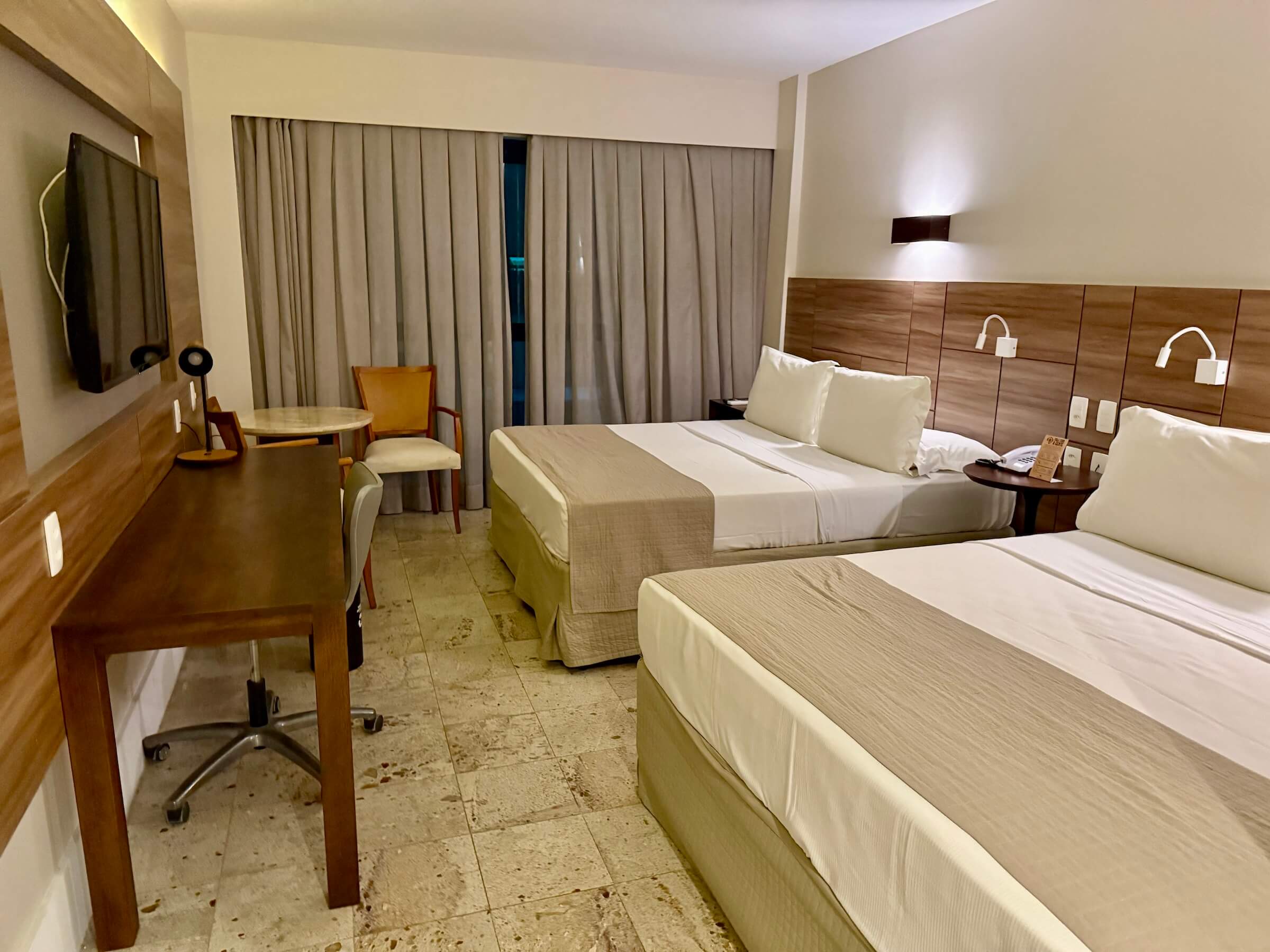Se você não se importa em ficar um pouco mais afastado do mar (uns 400m), o Mar Hotel Conventions é uma alternativa super bem avaliada e se vende como o hotel mais completo de Recife. Tem piscinas, academia, restaurante, bar e muitos quartos. São 380 acomodações, pensadas nos hóspedes que viajam a lazer ou a negócios (rolam muitos eventos por lá).