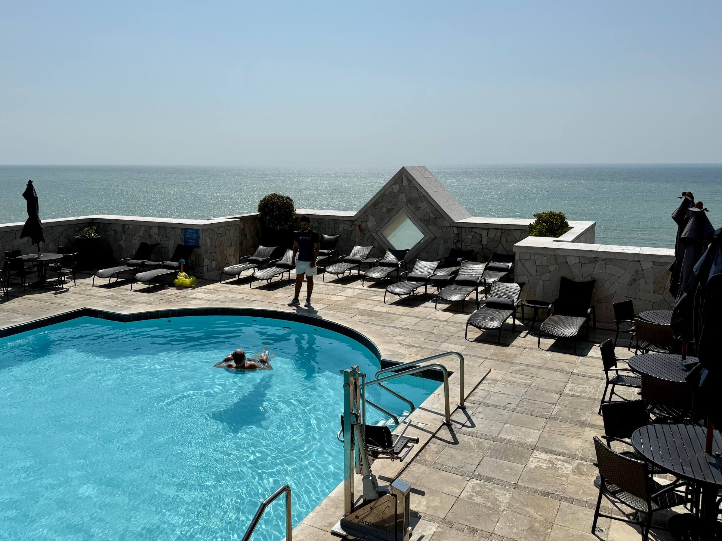 O hotel conta ainda com academia, spa e uma piscina no terraço. Ela não é muito grande, mas tem uma vista interessante. A área tem parapeitos mais altos, mas mesmo assim, pode ter bastante vento. O lobby é bonito, tem um bar com vista parcial para a praia. E volta e meia tem um pianista tocando por ali, ou outro músico com uma pegada mais clássica.