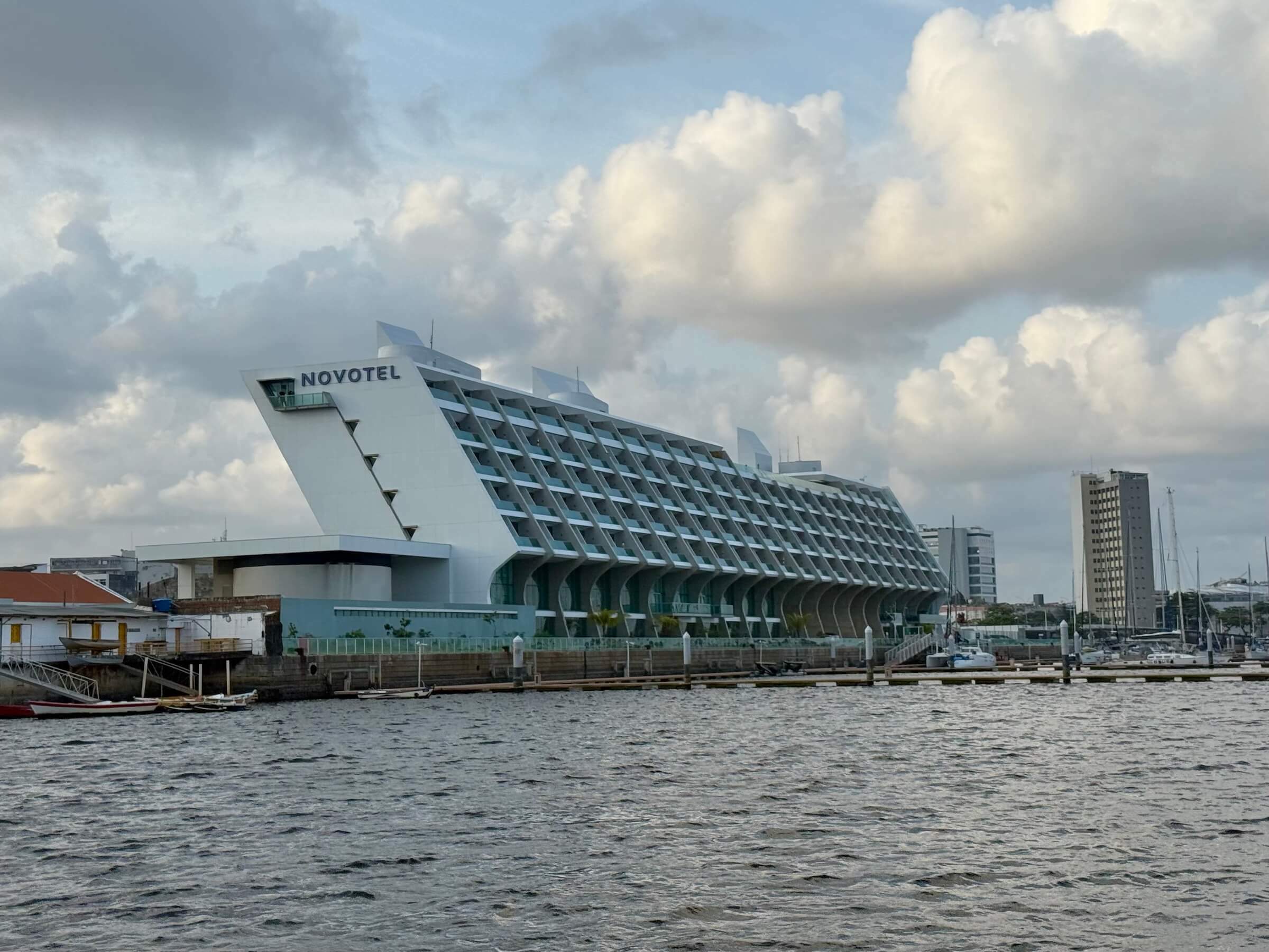 A gente não recomenda muito ficar no centro de Recife, não é uma região muito aprazível para osx turistas. Mas há uma exceção. Pertinho do Recife Antigo, o Novotel Recife Marina foi inaugurado em 2024. Pegar três diárias lá certamente elevou minha experiência na capital pernambucana.
