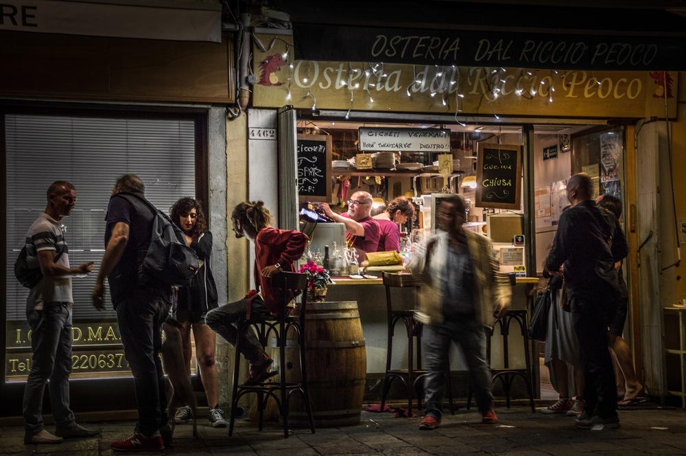 Eis aqui mais uma osteria do distrito de Cannaregio que serve os tradicionais cicchetti — petiscos, para nós brasileiros — e drinques deliciosos, com destaque para o popular Aperol Spritz. Na noite em que passamos por lá, saboreamos um crocante bolinho de peixe frito, que muito lembrava o nosso já conhecido croquete. Uma verdadeira perdição!
