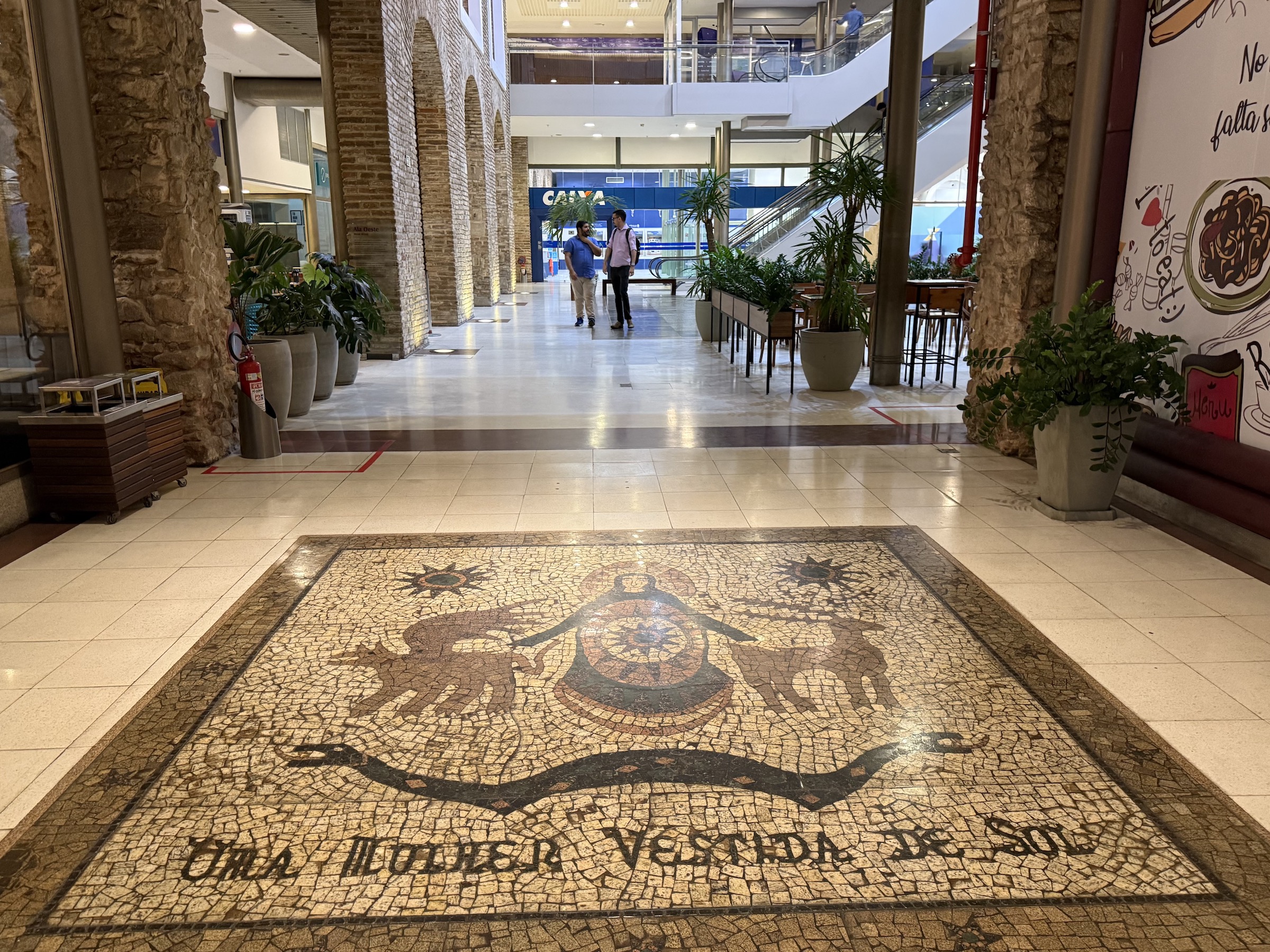 Uma característica muito massa desse lugar são os painéis de mosaico em granito com ilustrações baseadas na obra do escritor pernambucano Ariano Suassuna. O trabalho foi executado pelo artista plástico Guilherme da Fonte e pode ser visto nas quatro entradas de acesso ao Paço e na Praça Central.