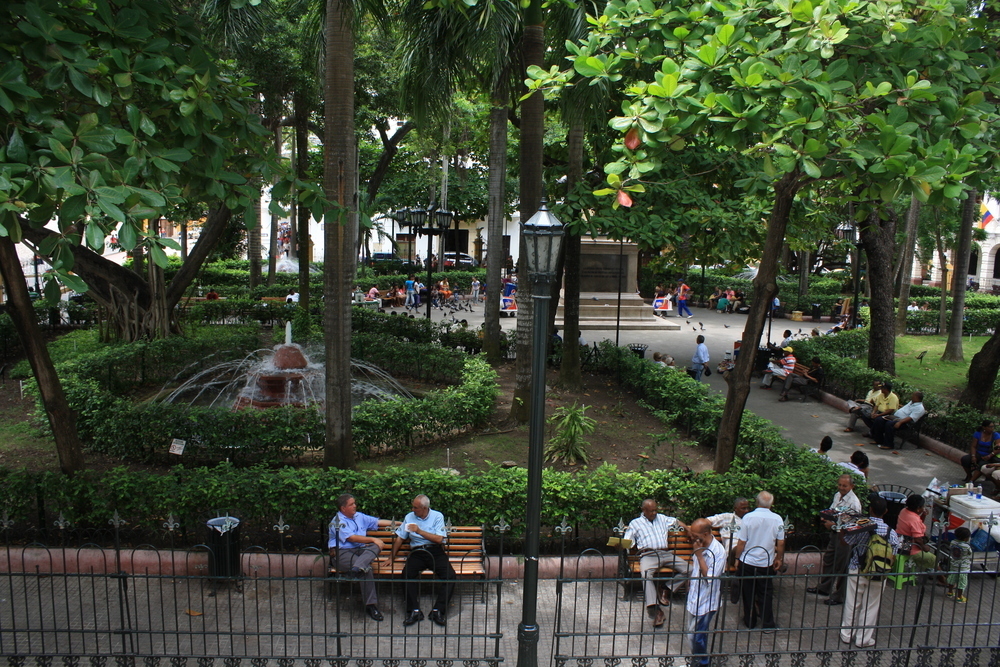 O Parque Bolívar é uma praça superarborizada no meio de Cartagena. Ele está perto de vários pontos turísticos da região e fica cheio durante todo o dia, com pessoas descansando nas sombras das árvores ou comendo alguma refeição comprada ali por perto mesmo.