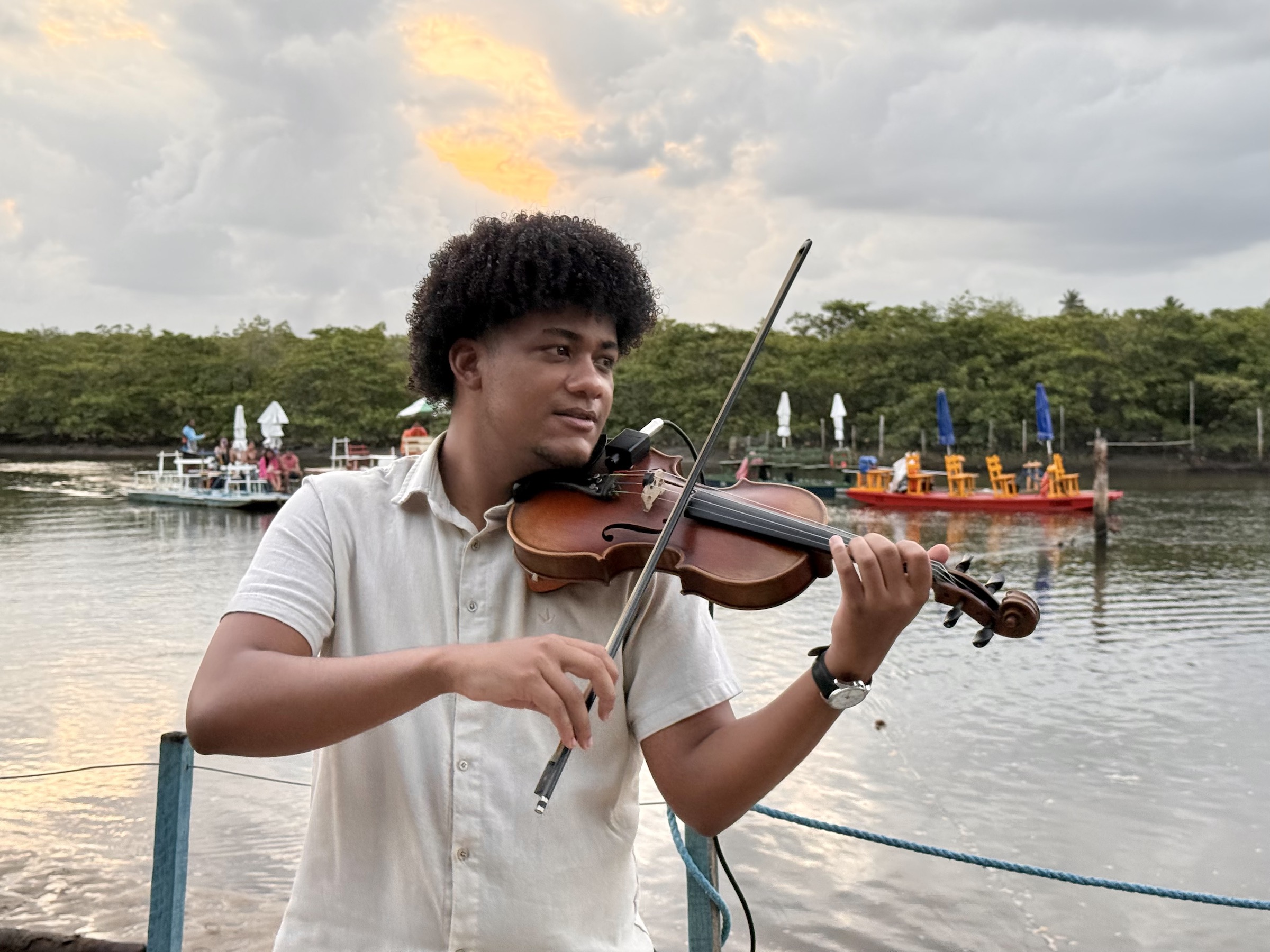 Esse lugar é um point: tem banquinhas de artesanato, de biquínis, artistas de rua também. Tinha um menino talentosíssimo tocando violino perto do pôr do sol, reuniu uma galera em torno dele.