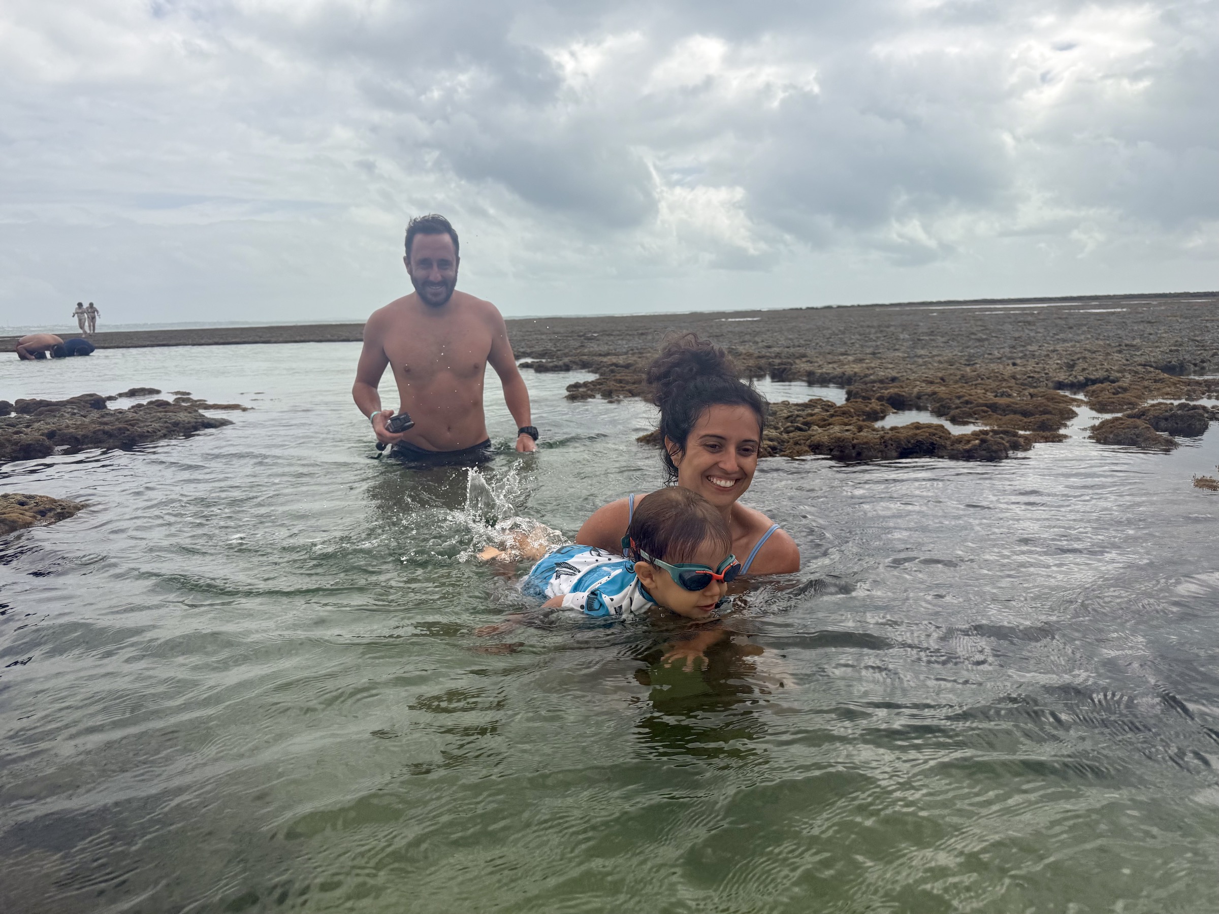 Como é um valor considerável, ainda mais se estiver viajando com a família, eu sugiro que você bote na balança. Meus pais, por exemplo, optaram por fazer o passeio de jangada lá na Vila de Porto de Galinhas mesmo, não quiseram conhecer as piscinas de Maracaípe. Ah, e também tem o passeio de jangada no rio. Mas de qualquer forma, vale ir até o Pontal de Maracarípe para curtir o mar rasinho da maré baixa: