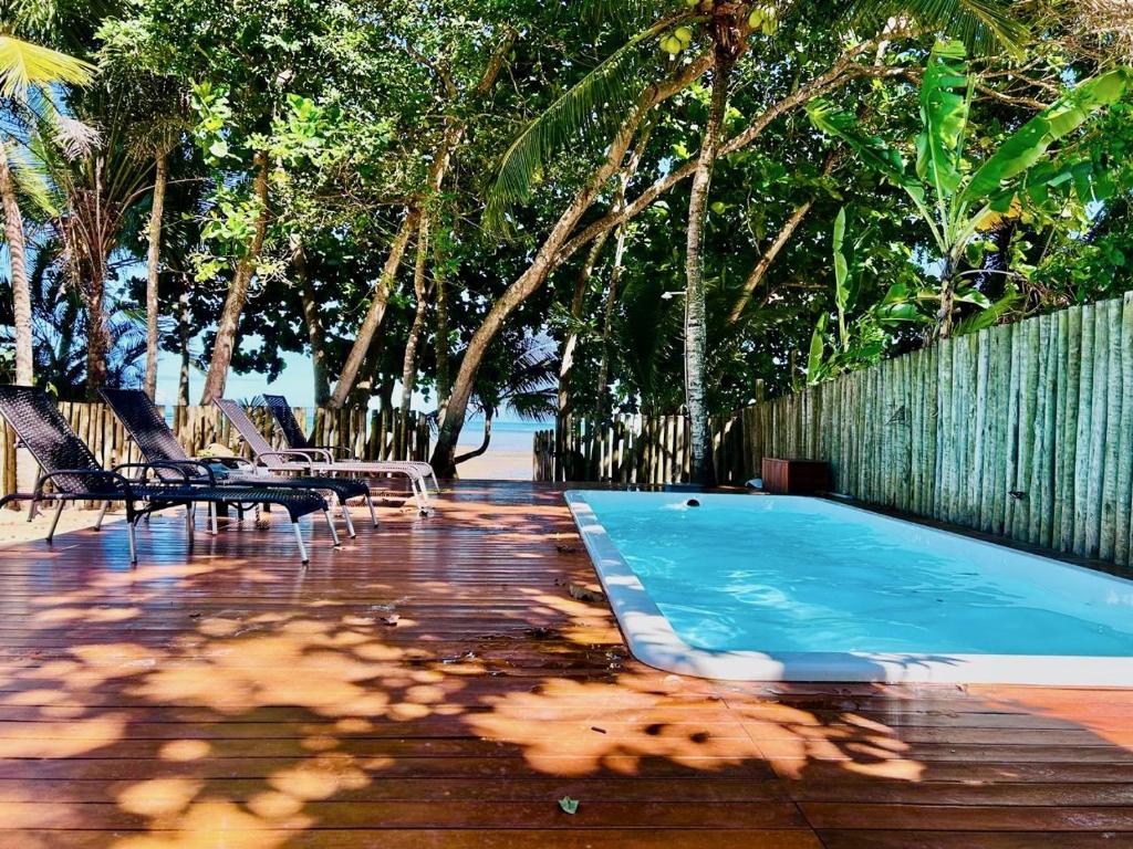 Na Praia de Cumuruxatiba, a melhor opção de hospedagem é a Pousada Areia Preta, que está, de verdade, à beira-mar. Saindo do quarto, você terá apenas que atravessar o jardim para já botar o pezinho na praia. A Areia Preta é uma das melhores pousadas de Cumuruxatiba e uma excelente opção para quem busca estar perto do mar. Impossível ver as espreguiçadeiras da pousada na praia e não desejar se hospedar por lá!