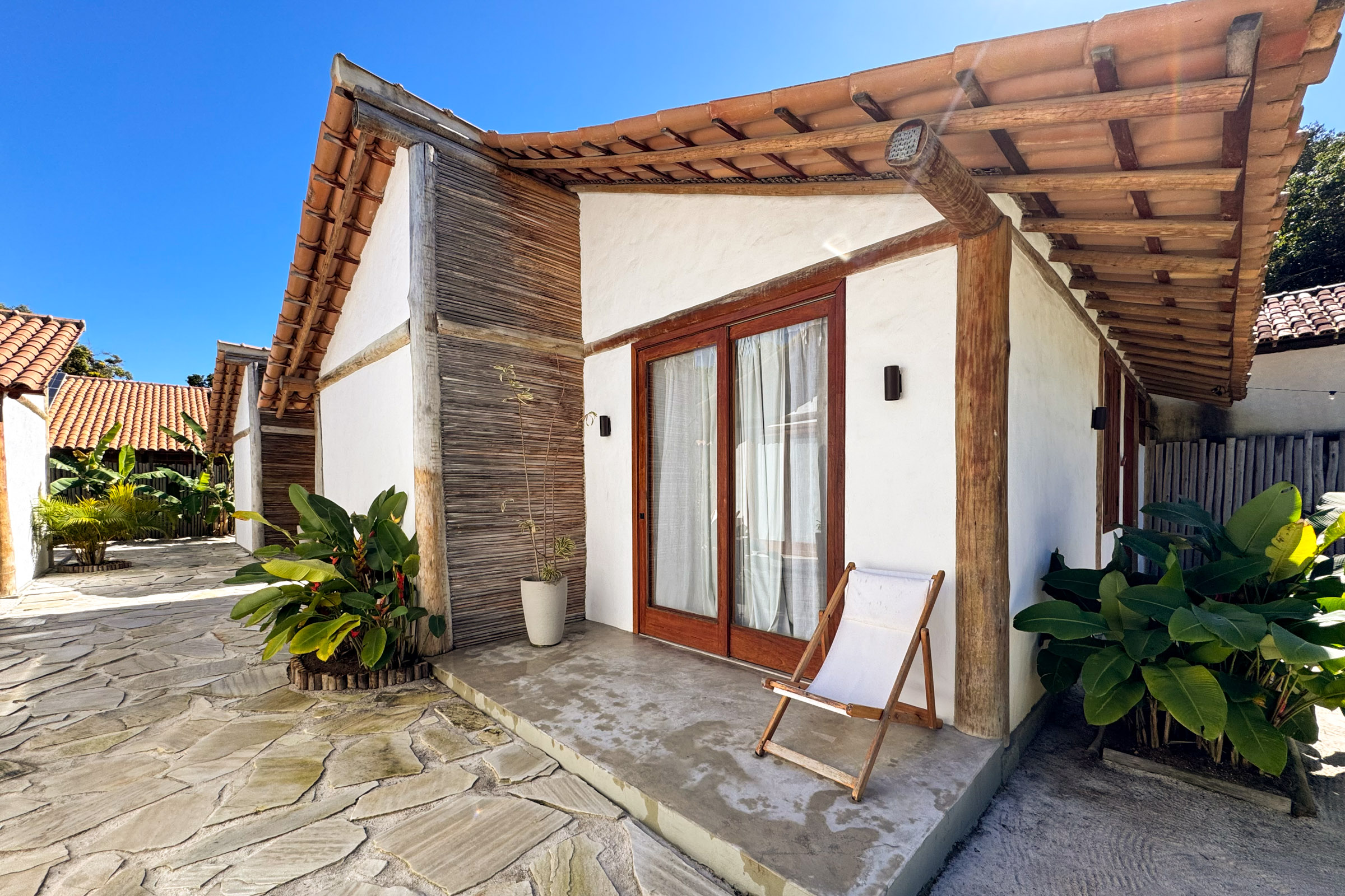 O Canto do Mar é um complexo de chalés muito charmoso, com cozinhas privativas, varanda e aquela rede deliciosa para relaxar. É ótima opção para quem busca mais privacidade e uma hospedagem completa para preparar a própria refeição ou um cafezinho no fim de tarde. Ideal para uma temporada mais longa e também para estadias curtas. Os chalés estão no alto de Cumuruxatiba, com isso, você não terá pé na areia, mas a vista do mar está garantida por lá.