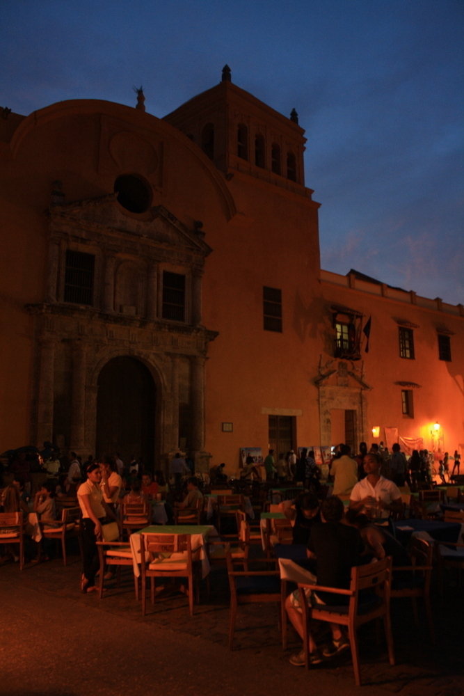 A Praça de Santo Domingo é uma das mais animadas e concorridas praças de Cartagena. Fica cheia de gente tanto durante o dia quanto à noite, quando se enche ainda mais de mesinhas dos restaurantes que estão ao redor dela. É um ótimo local para ir à noite, mesmo que seja apenas para bater papo ou tomar uma bebida.