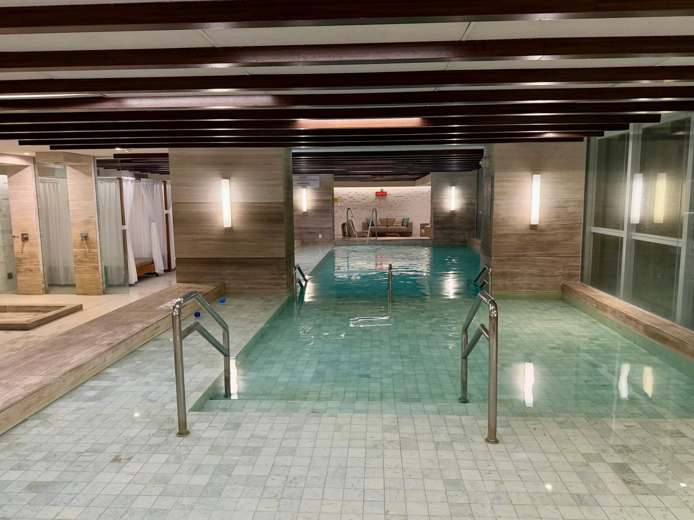 A piscina é coberta e climatizada. A academia é uma das melhores que já vi em hotel, com equipamentos variados, esteiras novas e até toalhinhas dentro do freezer pra ficarem geladinhas. Muito clean, ampla e refrigerada. O hotel também tem uma sala kids, não muito grande, mas colorida e convidativa, e uma sala com ping-pong e pebolim. O café da manhã é variado e muito gostoso. Veja os preços da hospedagem aqui.