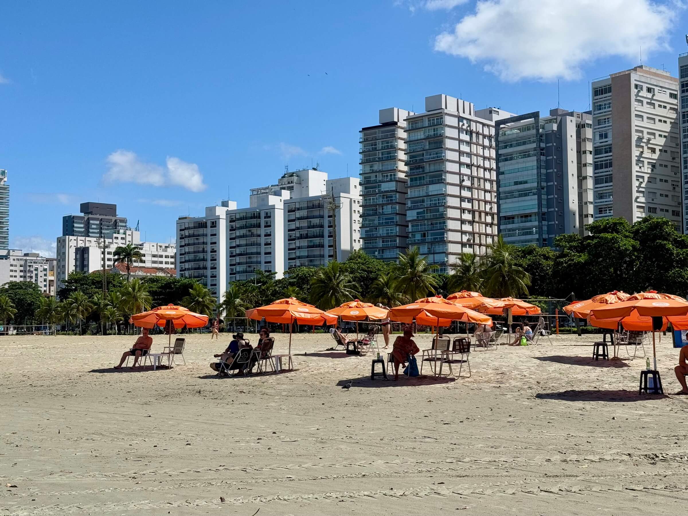 Na praia, você encontra barracas de comida e bebida, locação de cadeiras e guarda-sóis, vendedores ambulantes, canchas de beach tennis e, diariamente, vai ver muita gente praticando exercícios físicos. É o local escolhido pela prefeitura para a realização de grandes eventos — quando eu visitei, ainda estava lá o palco onde ocorrera o show do Thiaguinho um dia antes, na faixa de areia mesmo. Também há uma concha acústica para pequenos shows no calçadão.