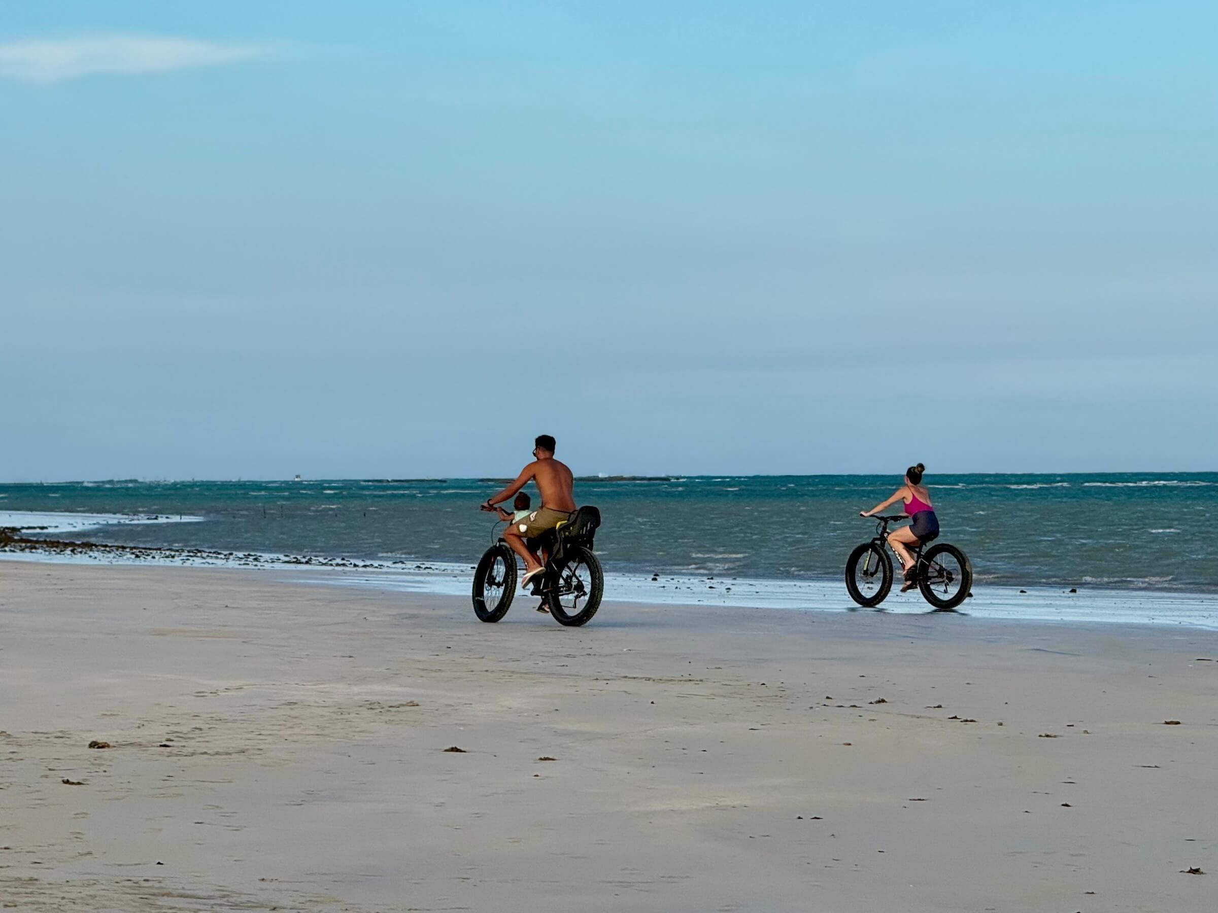 Na Praia do Marceneiro, também dá para alugar uma bicicleta "fat bike", aquela com a roda mais grossa para andar na areia. Mas eu já vou adiantando que quando tem vento a galera sofre para pedalar. Também vale caminhar a orla rumo ao Norte até encontrar a capela.